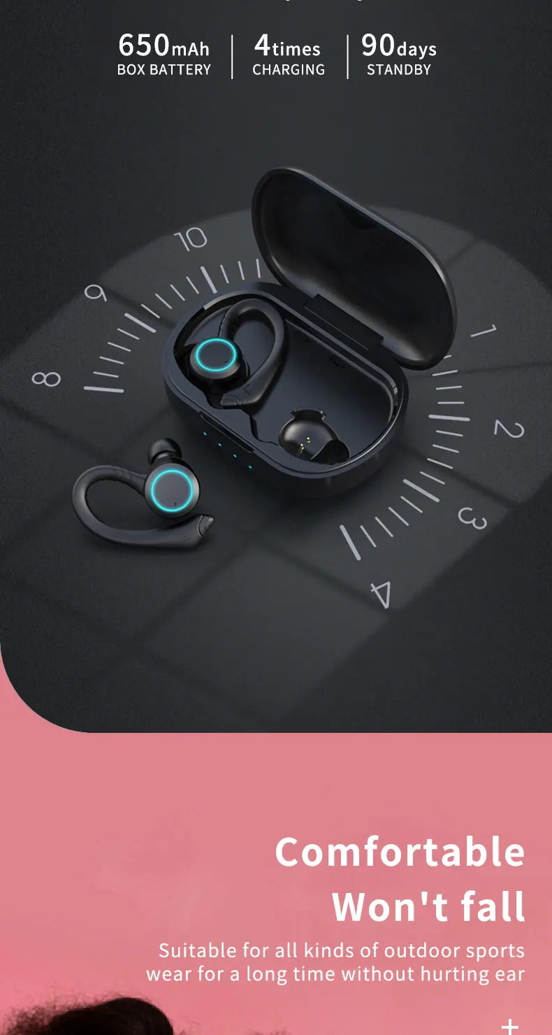 【Larga Duración de reproducción/tiempo de conversación 】acumulador de litio de calidad superior, estuche de carga portátil, ambos le permiten disfrutar de la música en movimiento durante 24 horas.