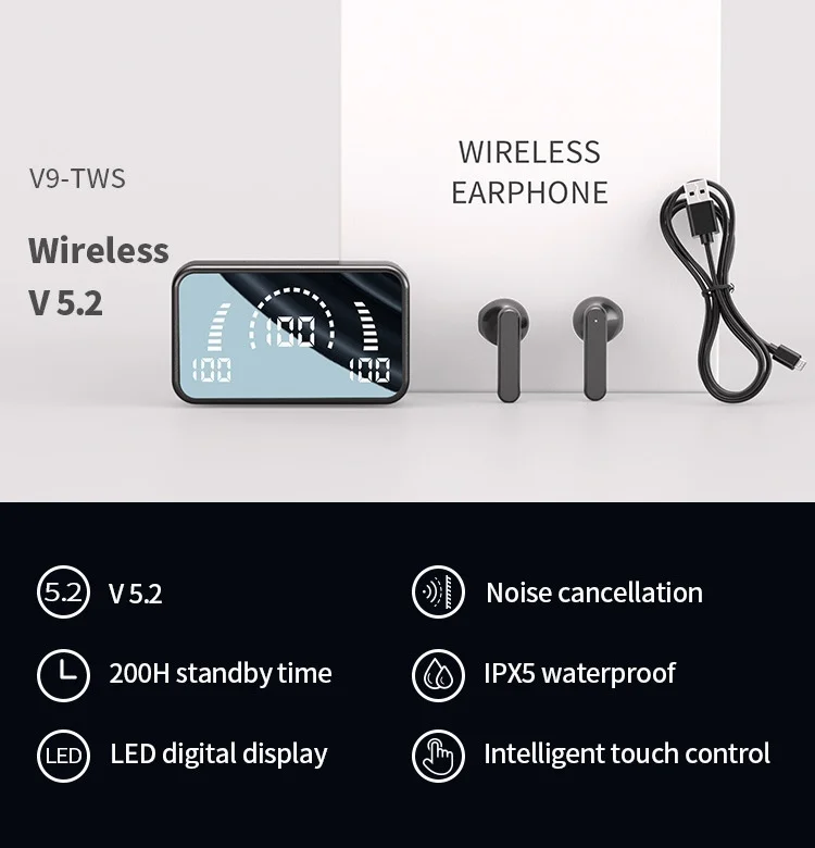 Comprar Auriculares inalámbricos TWS con Bluetooth 5,0, cascos deportivos con micrófono y caja de carga para todos los teléfonos inteligentes