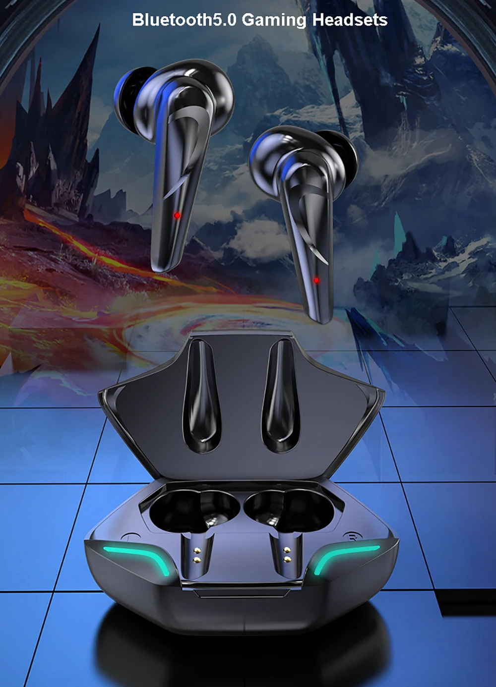 Características: modo dual de música y juegos; baja latencia; reducción de ruido; estéreo de alta fidelidad; IPX7 impermeable y resistente al sudor; voz HD