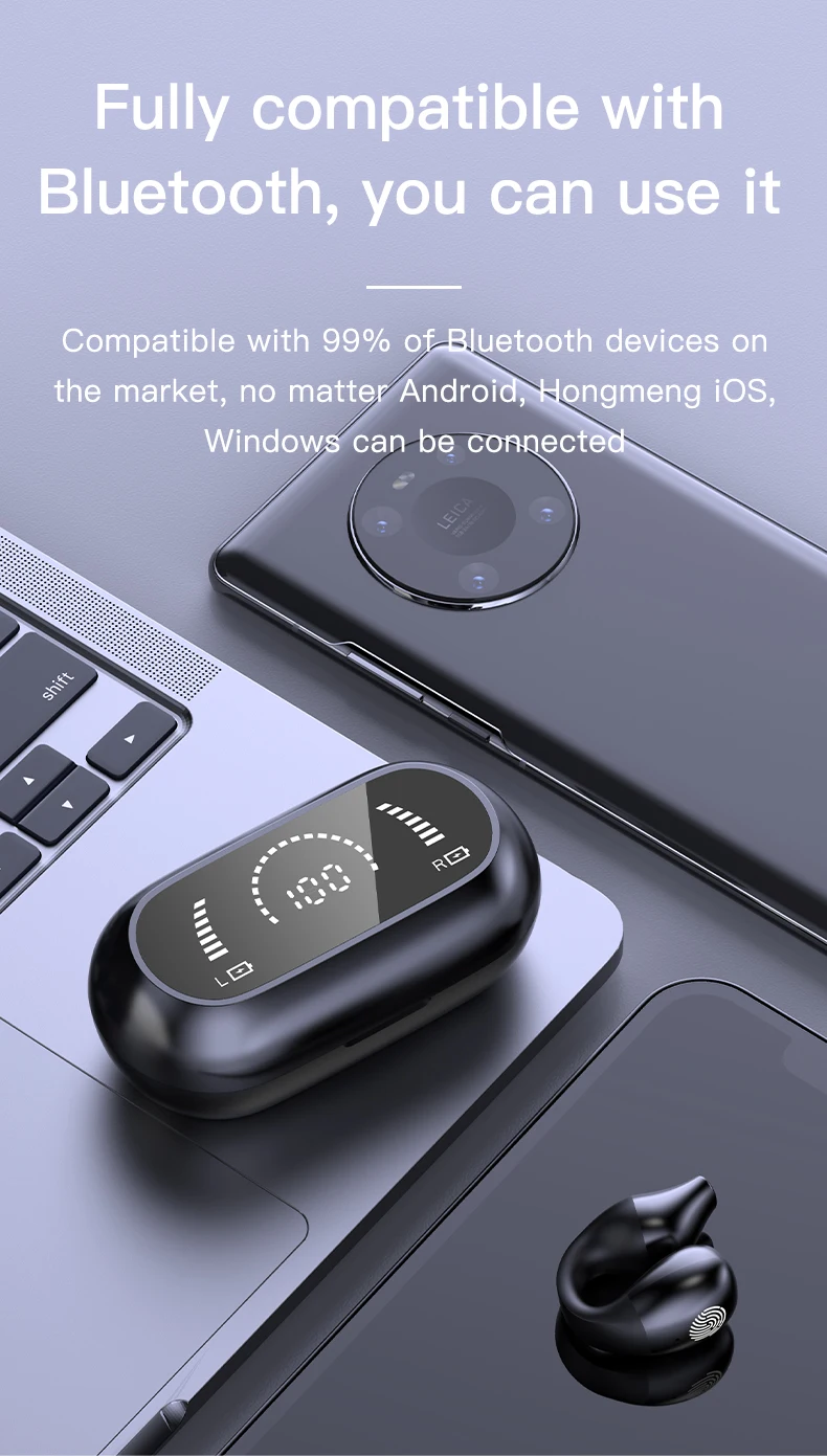 1. Bluetooth V5.3, compatible con la mayoría de dispositivos Bluetooth y bajo consumo de energía.