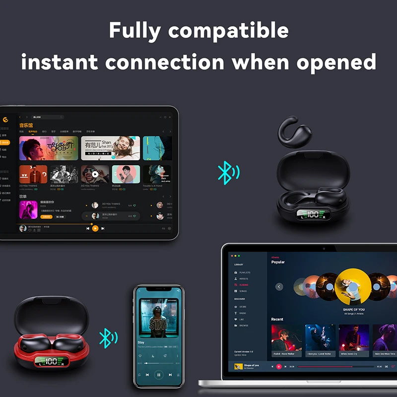 Comprar Auriculares inalámbricos TWS con Clip para la oreja, estéreo envolvente 3D, HIFI, graves pesados, deporte, juegos, música, conducción ósea, Bluetooth