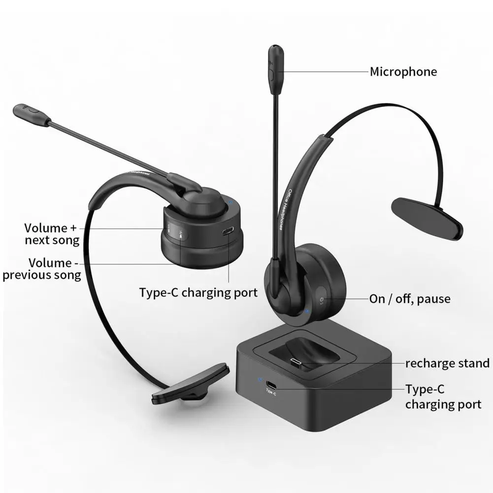 Auriculares universales 300mAh compatibles con Bluetooth 5,3 Auriculares inalámbricos Ergonómico Aviso de voz Auriculares inalámbricos Suministros de negocios