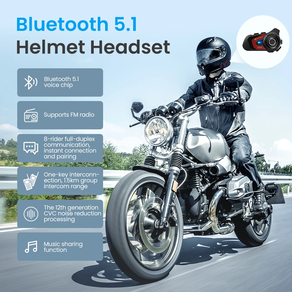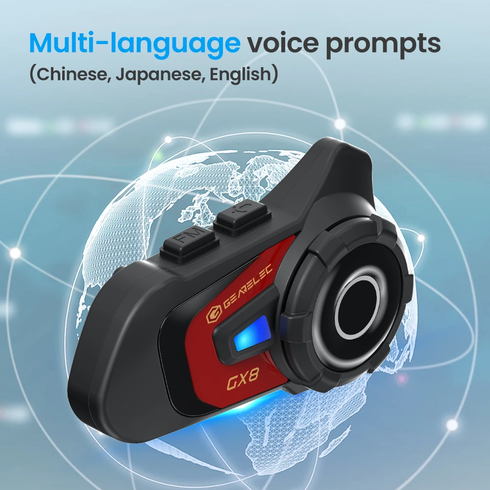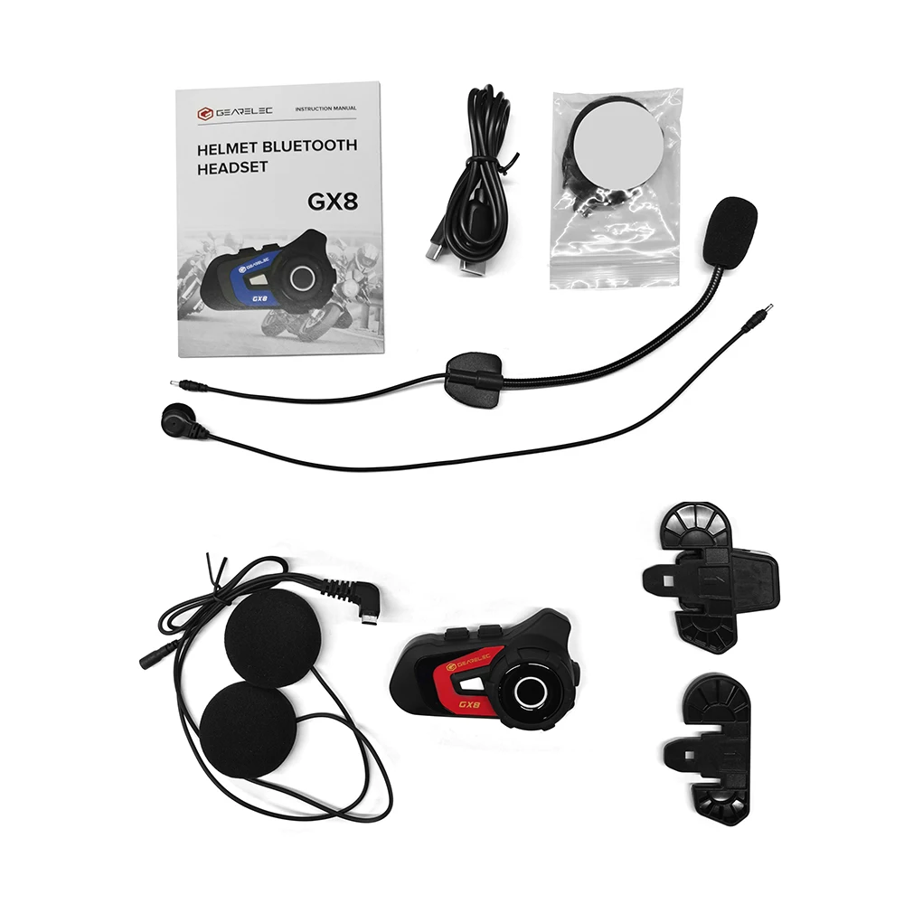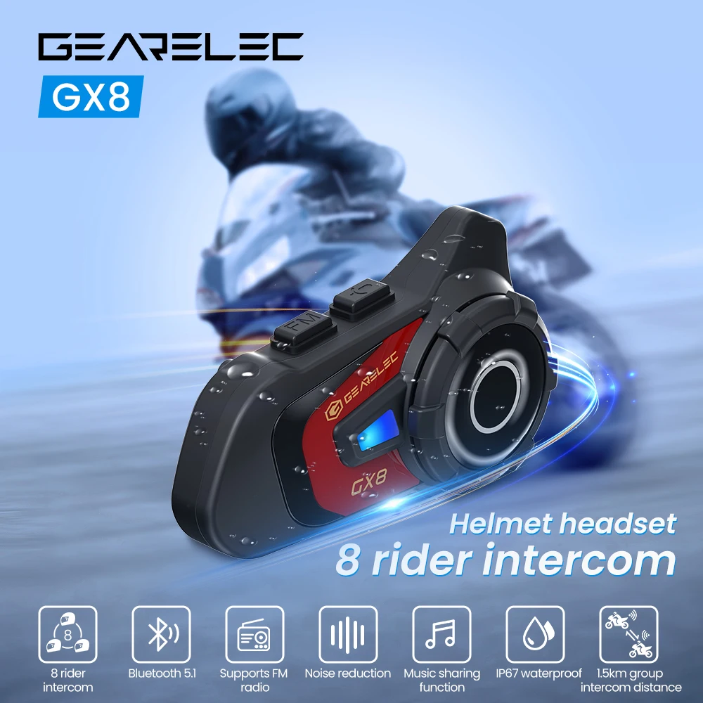 GEARELEC GX8 Motocicleta Intercom Bluetooth Compartir Música 1500m 8 Grupo de Jinetes Casco Comunicación Altavoz Auricular Interphone