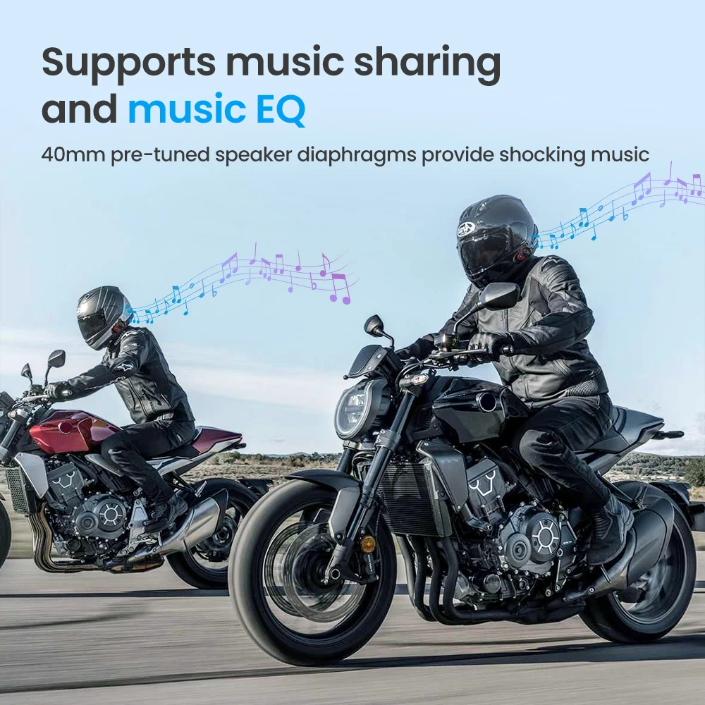 • Batería incorporada:La batería incorporada garantiza que las funciones de intercomunicación y de intercambio de música estén siempre disponibles, incluso cuando la batería de su motocicleta esté baja.