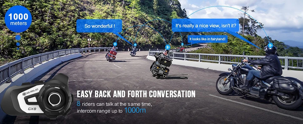 • Comunicación del intercomunicador:Le permite comunicarse con hasta 8 ciclistas dentro de un rango de 1500m, lo que lo hace perfecto para paseos en grupo.