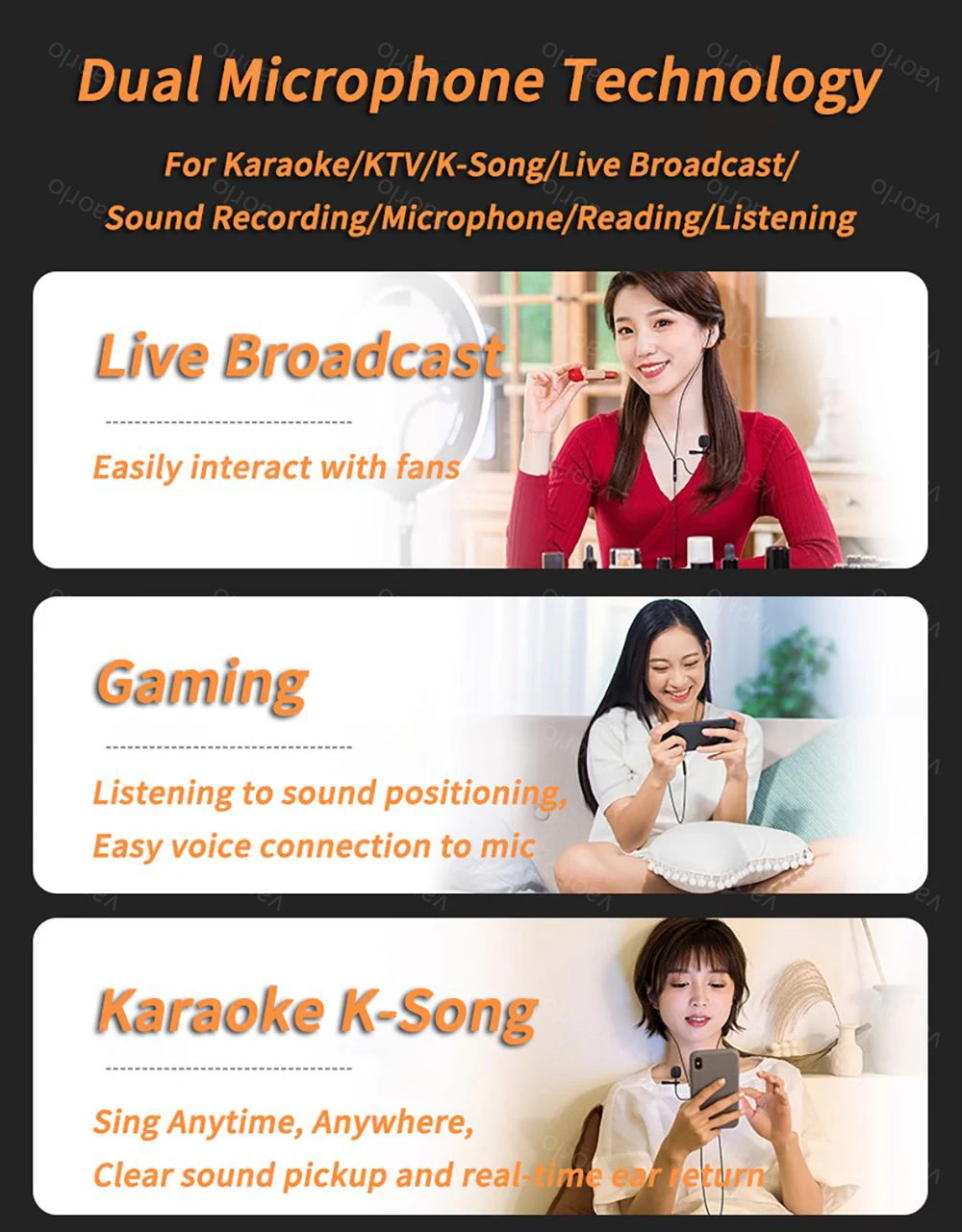 ●Auriculares de karaoke profesionales, adecuados para karaoke, transmisión en vivo, grabación de sonido y micrófono. El micrófono al alcance de su mano, mini compacto, exquisito, elegante y altamente portátil;