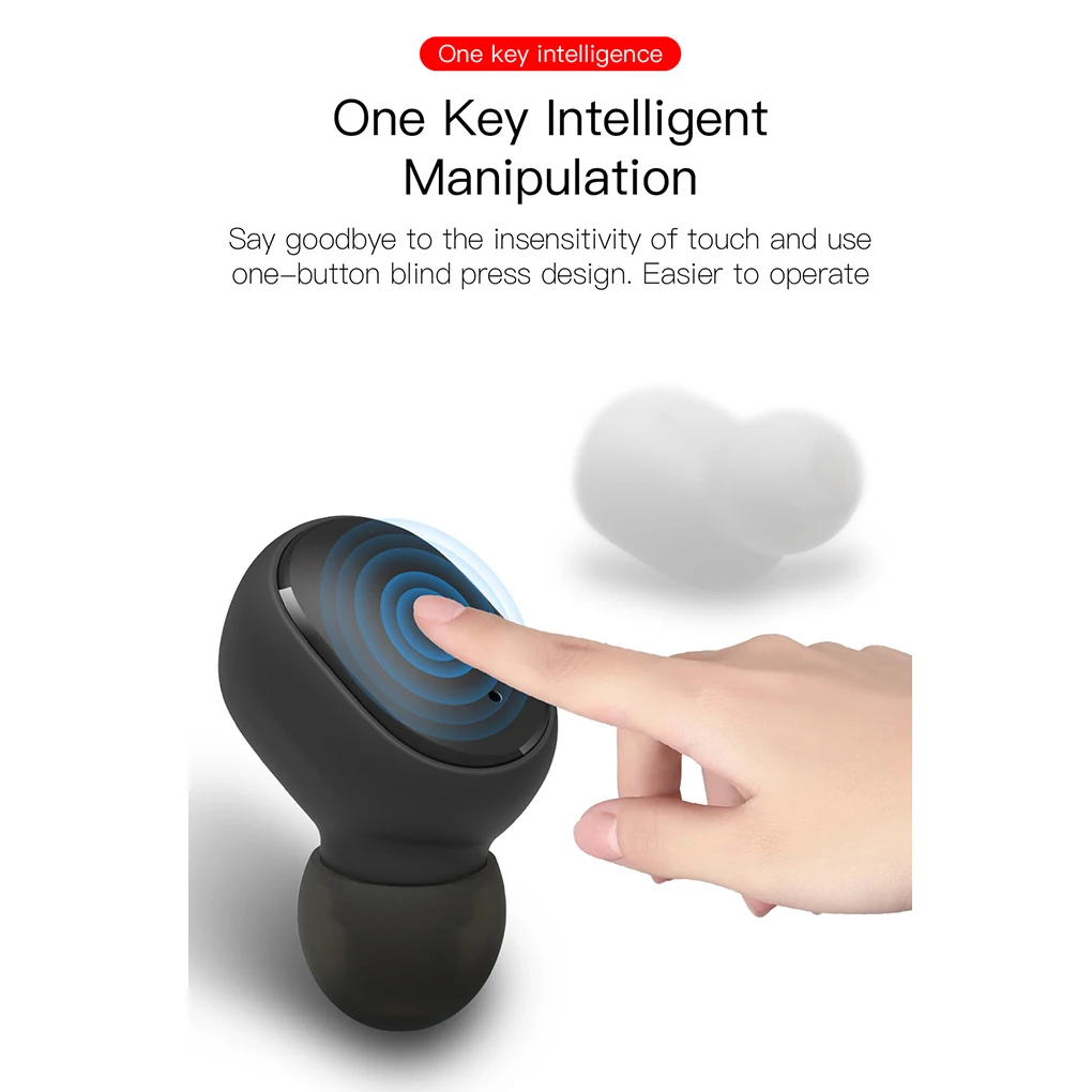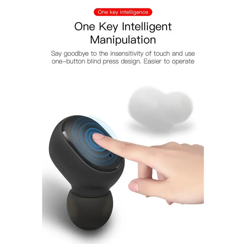 Este auricular Bluetooth es adecuado para todos los dispositivos compatibles con Bluetooth, como teléfonos, ordenadores portátiles y otros.La caja de carga portátil es conveniente para llevar y cargar los auriculares, y se puede utilizar durante mucho tiempo cuando está completamente cargada.Está diseñado con un micrófono incorporado, que admite llamadas manos libres, puede responder o rechazar las llamadas con una sola mano, asegurándose de su seguridad al conducir.Puede usar el auricular izquierdo y derecho al mismo tiempo, y puede compartirlo con otros, pero si usa los 2 auriculares al llamar, solo el auricular principal podría escuchar el sonido al llamar, si usa los auriculares por separado, ambos auriculares podrían escuchar el sonido con claridad.Este auricular está diseñado con tecnología Bluetooth V5.0, que funciona con una conexión estable y fácil transferencia, puede llamar a otros sin problemas y le proporciona un sonido estéreo y claro, dándote un agradable disfrute musical.Está diseñado con una pantalla LED inteligente, conveniente para que usted sepa la cantidad de electricidad.Especificación:Material: plástico.Color: negro.Tamaño: Caja de carga: 62*27,5mm.Versión de Bluetooth: V5.0.Distancia de transferencia: 10m.Tiempo de carga: alrededor de 1-2h.Tiempo de reproducción de música: aproximadamente 3h.Batería del auricular: 45mAh.Batería de la caja de carga: 300mAh.Formato de transferencia de audio: HFP / A2DP / HSP / AVRCP.Impermeable: IPX4.Nota:Debido a la diferencia de luz y pantalla, el color de los artículos puede ser ligeramente diferente al de las imágenes.Permita una ligera desviación en los datos de medición y asegúrese de que no le importa antes de realizar el pedido.Paquete incluido:1x par de auriculares.1 cable USB.1 Introducción.