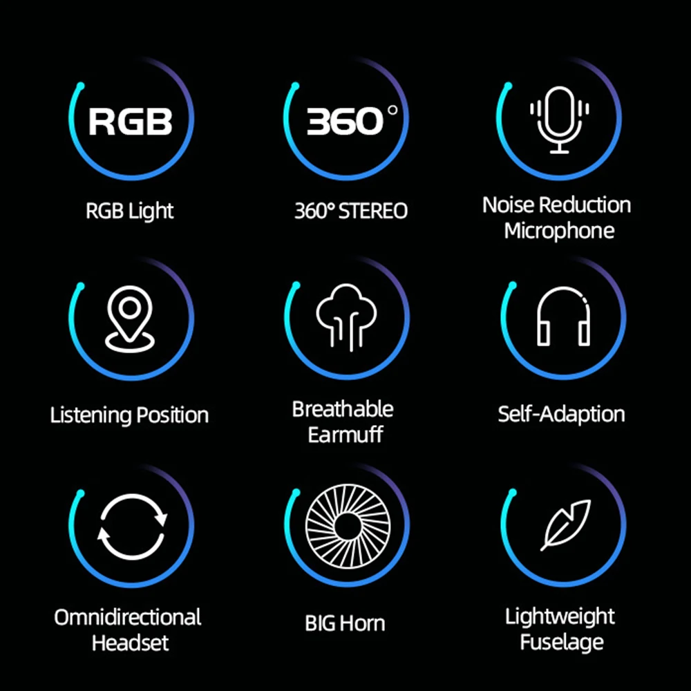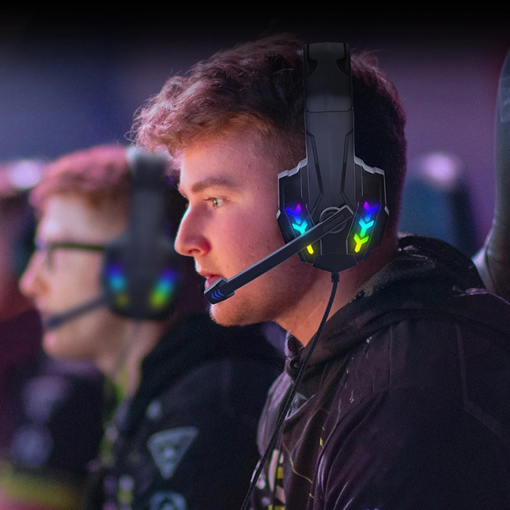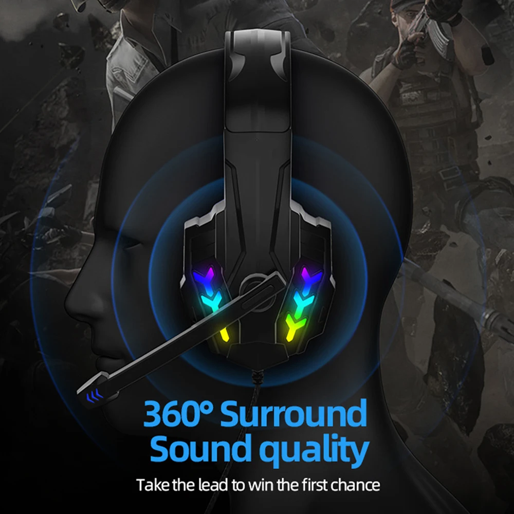 6.[Luces LED deslumbrantes] Las luces LED están diseñadas en las orejeras y el micrófono para resaltar la atmósfera del juego.