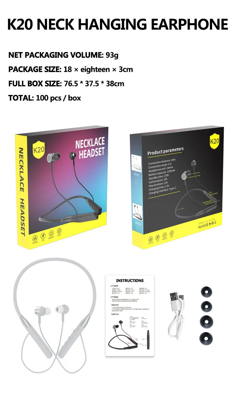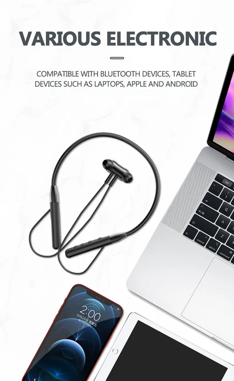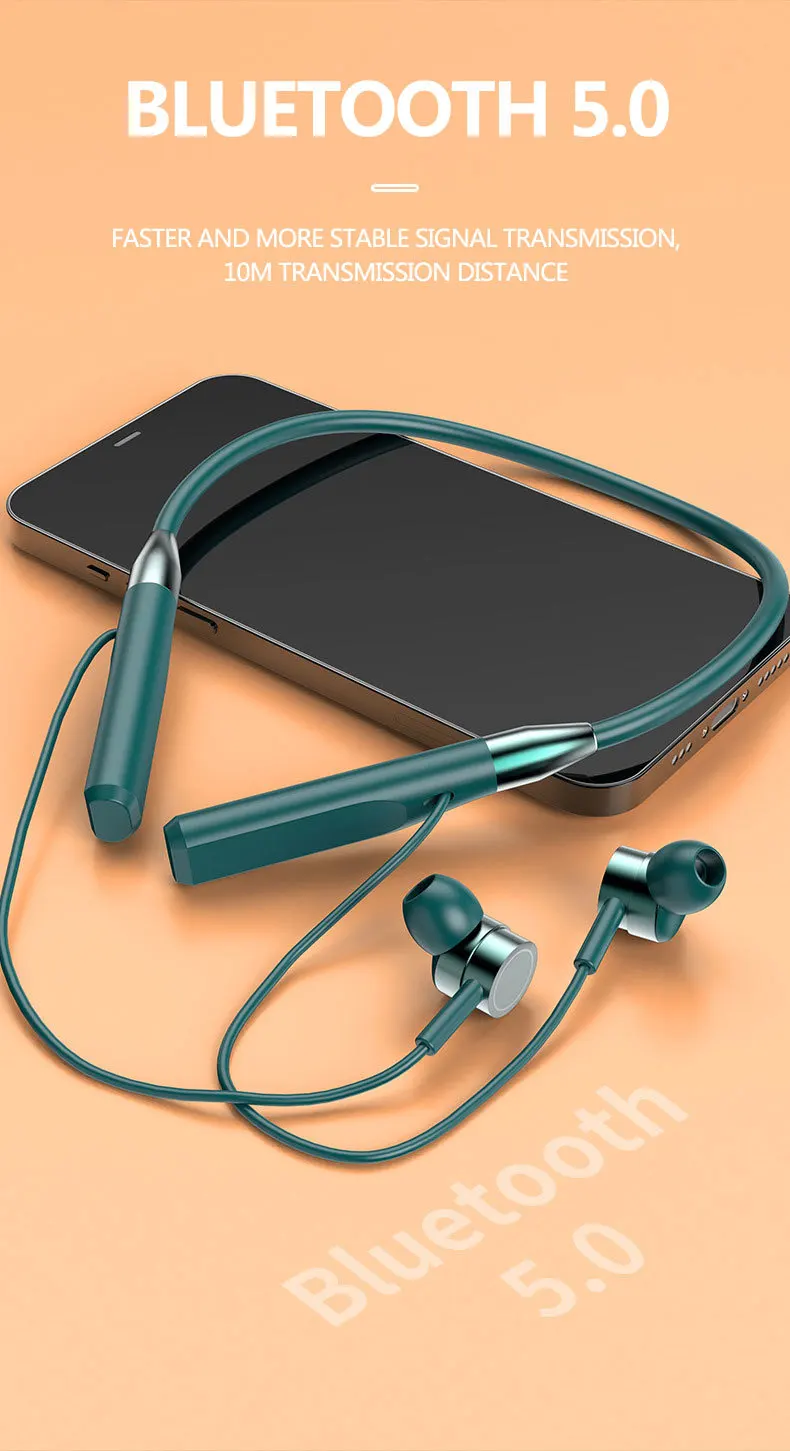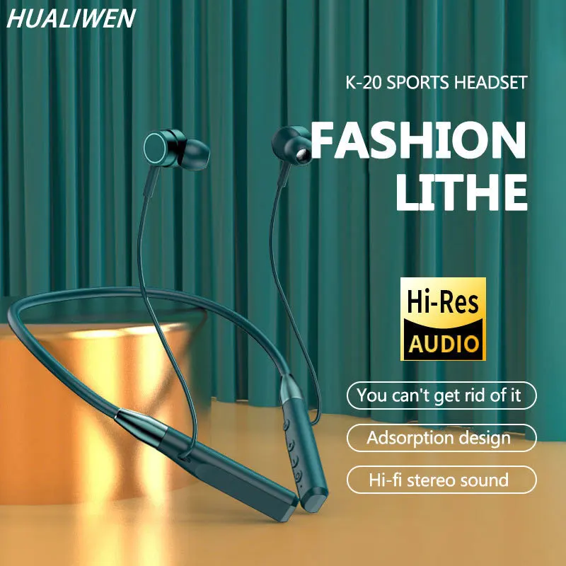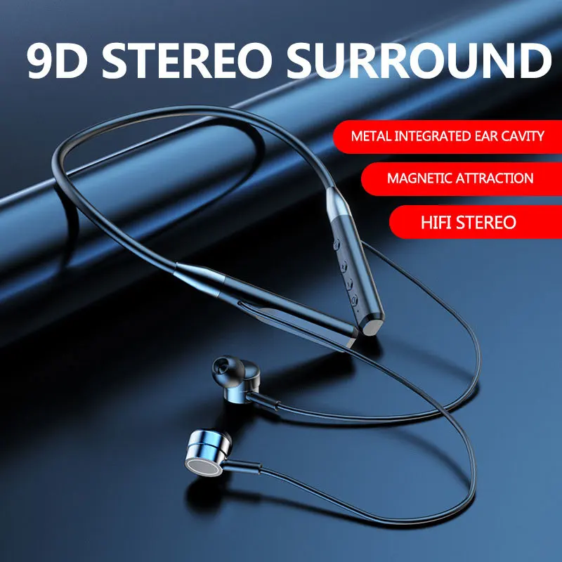 Comprar Auriculares magnéticos inalámbricos con Bluetooth 5,0, cascos estéreo montados en el cuello, manos libres con micrófono