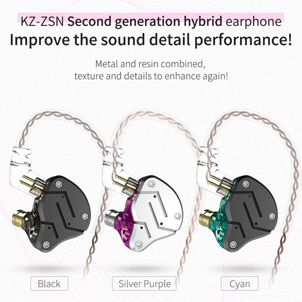 KZ-ZSN auriculares de Metal auriculares de graves HIFI tecnología híbrida 1BA + 1DD auriculares intrauditivos con monitor Cancelación de ruido auriculares deportivos