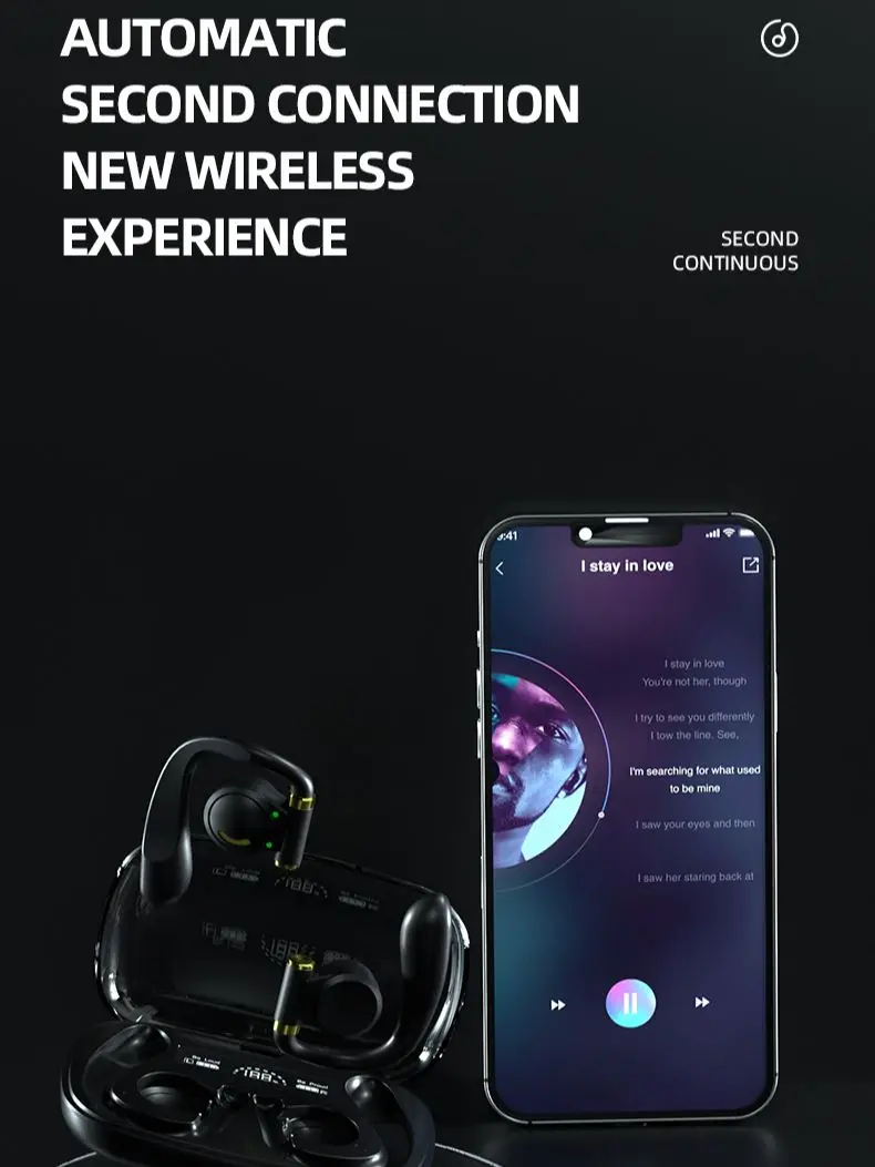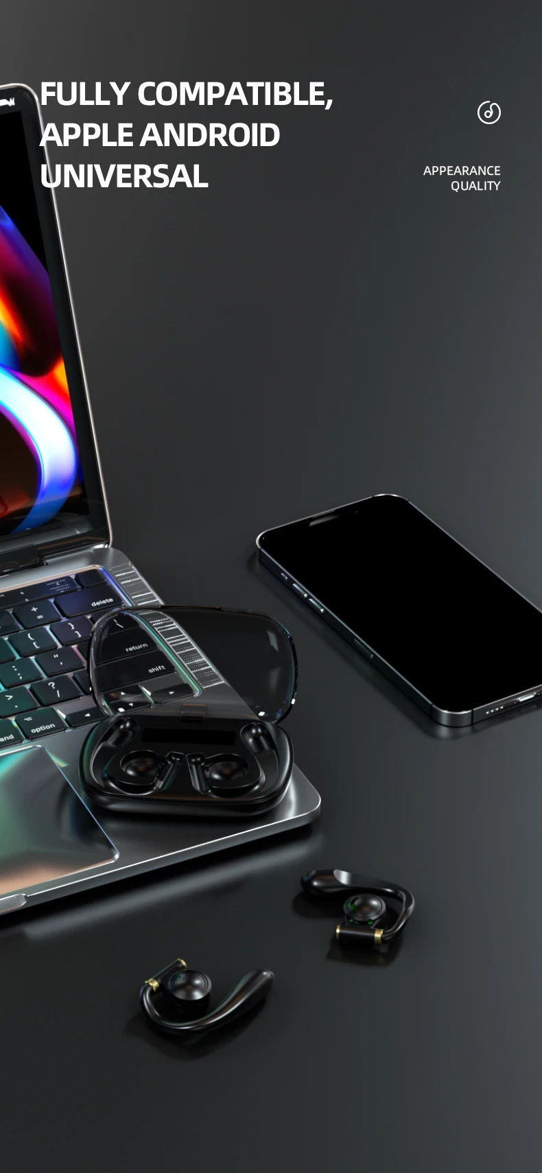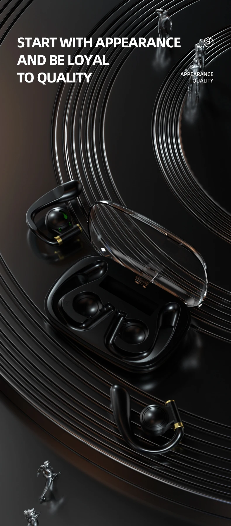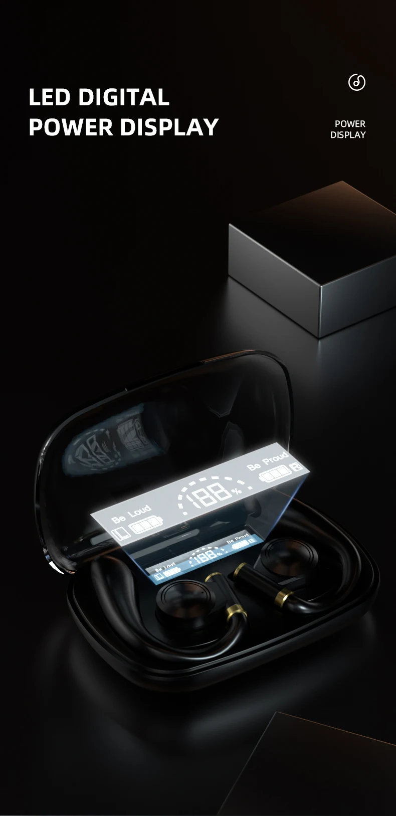 Auriculares sobre la oreja OWS Bluetooth 5,3 Auriculares abiertos Auriculares deportivos con pantalla LED digital Estuche de carga