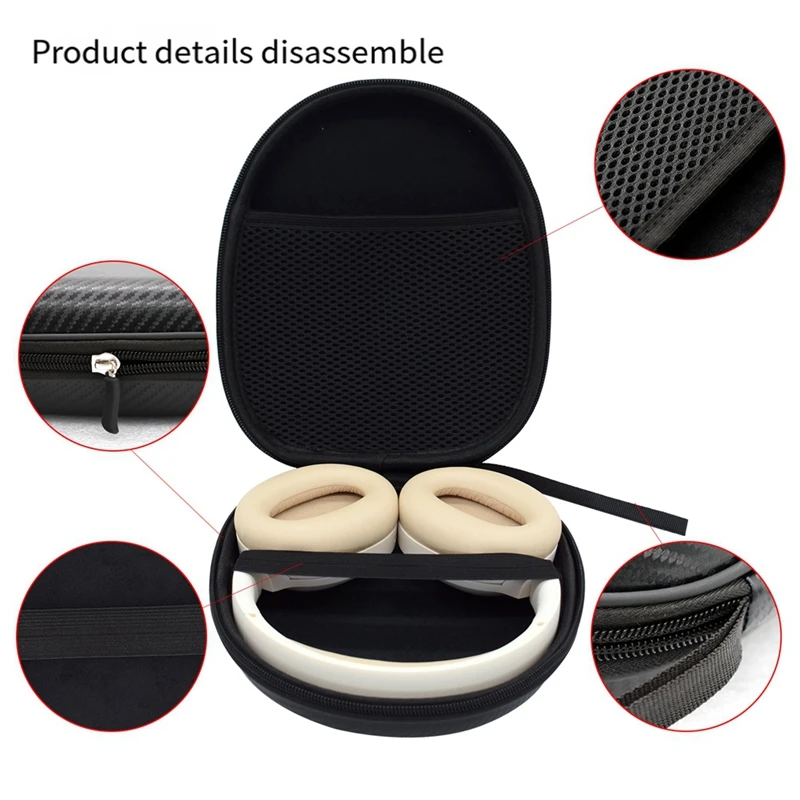 Espacio de accesorios: la bolsa de malla es adecuada para otros accesorios de auriculares, por ejemplo cables, cargadores.Puede mantener todos sus accesorios juntos y proteger sus auriculares.