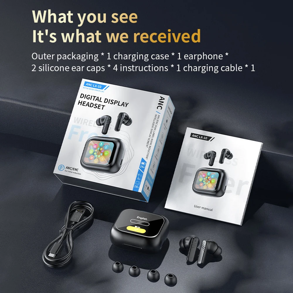 Auriculares con pantalla táctil completa ANC Bluetooth 5,4 Auriculares con cancelación de ruido Auriculares intrauditivos inalámbricos ENC con micrófono para teléfono inteligente