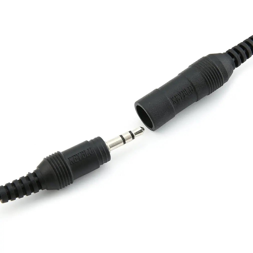 Diámetro estándar de dos pines: oreja estéreo de 3,5mm (pin superior). Micrófono estéreo de 2,5mm (pin inferior).