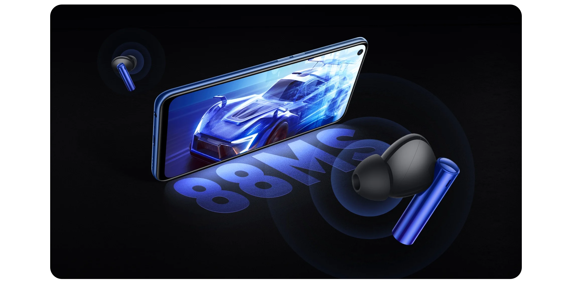 3. La "latencia súper baja de 88MS" son los datos de latencia de los Buds Air 3 con el modo de juego activado. Los datos anteriores se obtienen de laboratorio de la Realme. Dado que el resultado de la prueba se ve afectado por el entorno de prueba, consulte el elemento real.