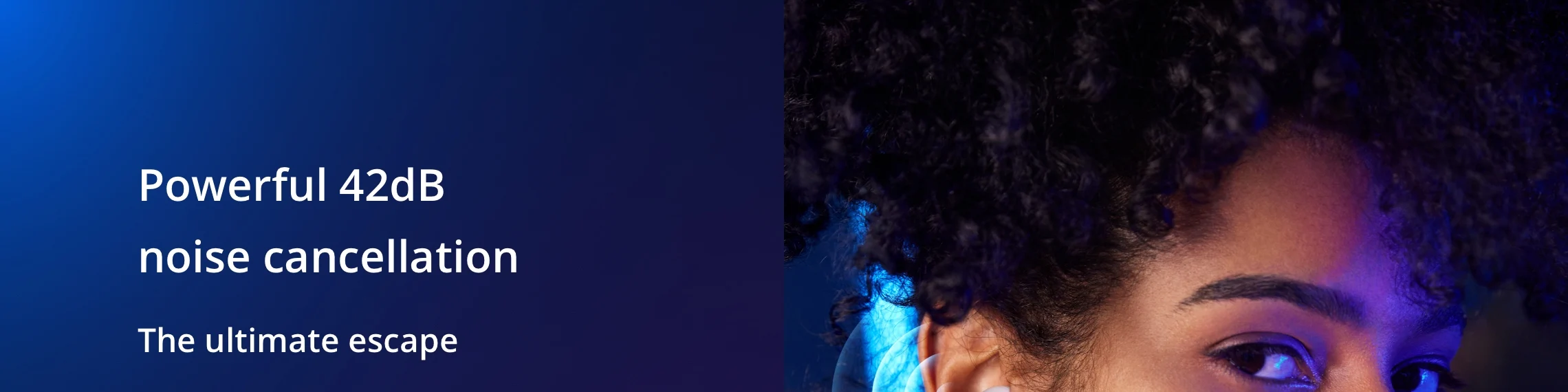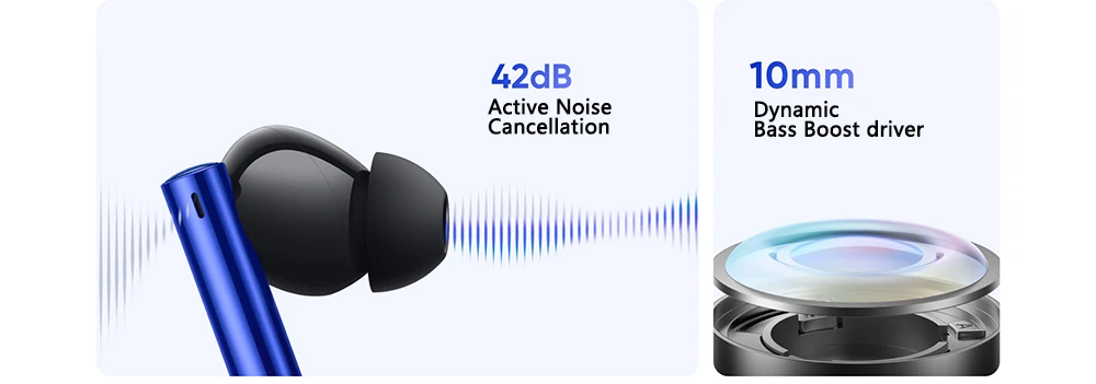 Cancelación activa de ruido de 42dB | Reproducción total de 30 horas | Controlador Dynamic Bass Boost de 10mm