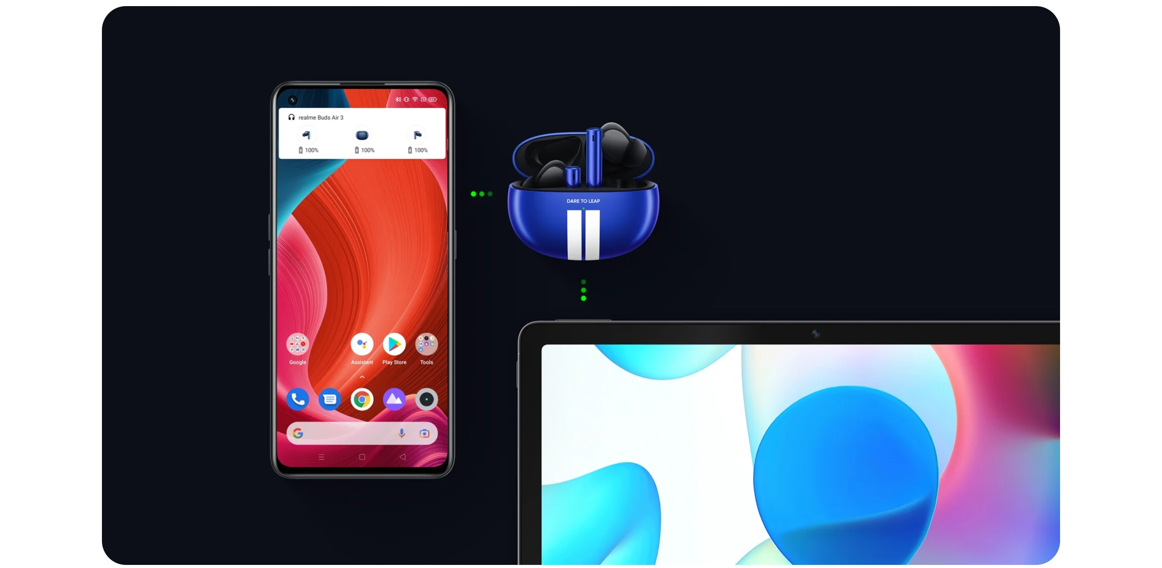 Los Buds Air 3 pueden emparejarse simultáneamente con 2 dispositivos, como un teléfono inteligente, una almohadilla o un ordenador portátil. Cuando esté viendo videos en su tableta, puede cambiar sin problemas a su teléfono al recibir una llamada.