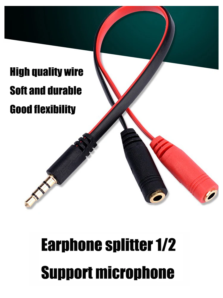 Auriculares de teléfono portátiles de 4 secciones 1 a 2 a auriculares de ordenador micrófono externo Cable de conversión de Karaoke alta calidad de sonido