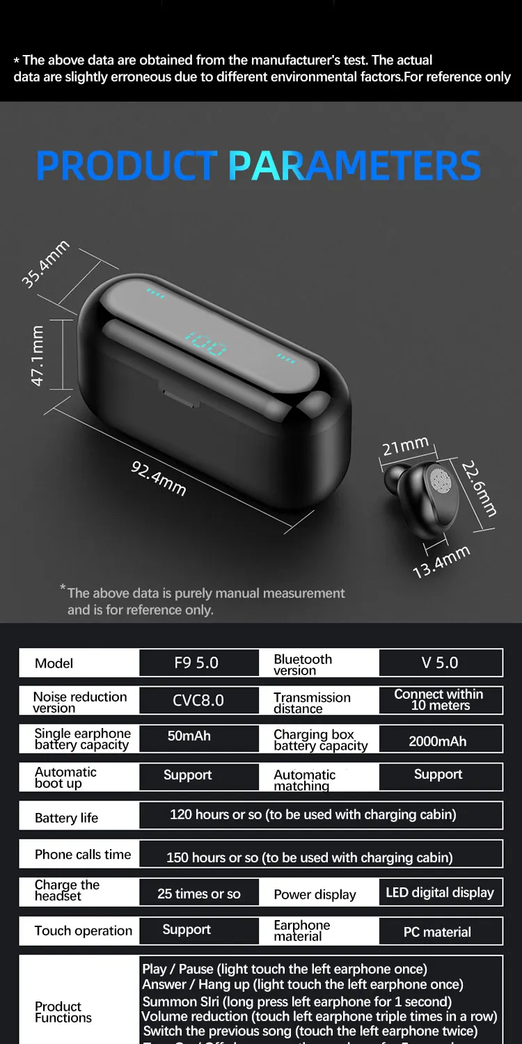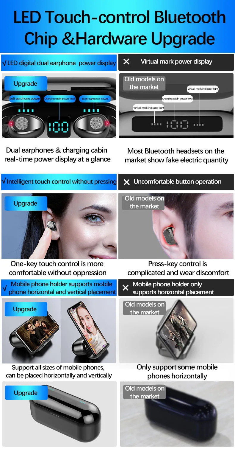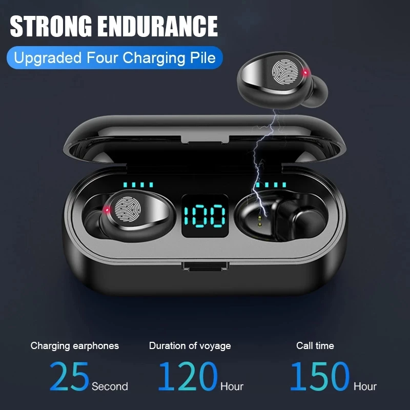 Comprar Auriculares TWS F9 inalámbricos por Bluetooth 5,0, Mini auriculares deportivos estéreo con bajos y caja de carga