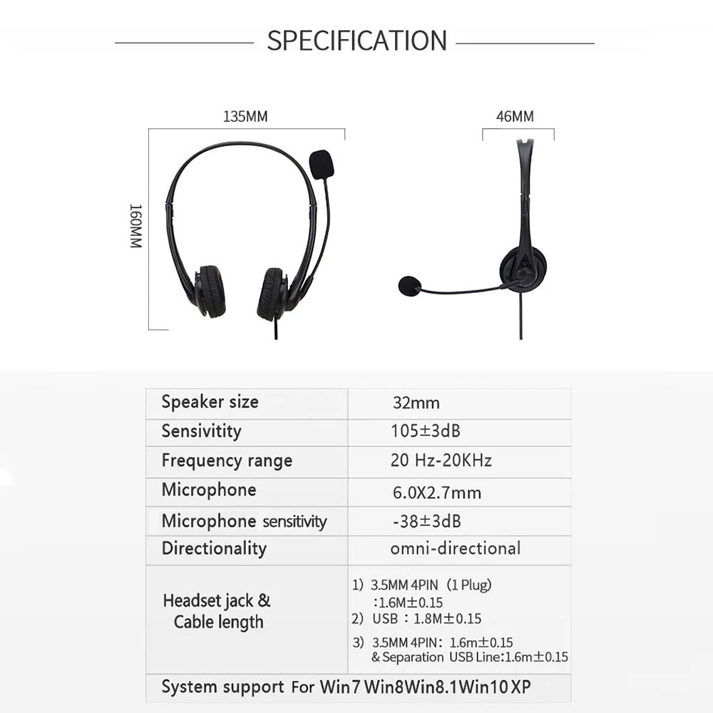 Comprar Auriculares universales con cable para PC, cascos USB con micrófono con cancelación de ruido para ordenador portátil, Chat, red, enseñanza, videoconferencia, 3,5mm