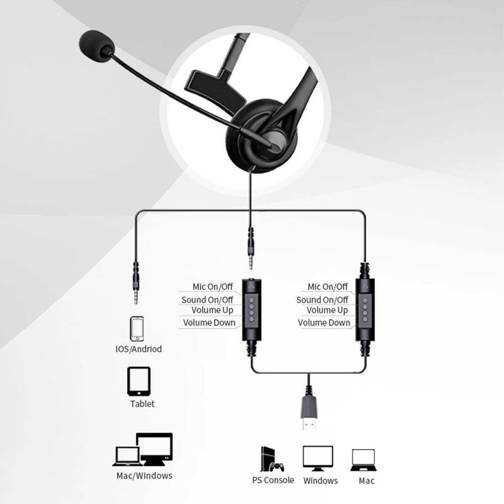 Comprar Auriculares universales para centro de llamadas, audífonos de negocios con cable USB de 3,5mm, micrófono, Control de volumen, cancelación silenciosa, operador telefónico