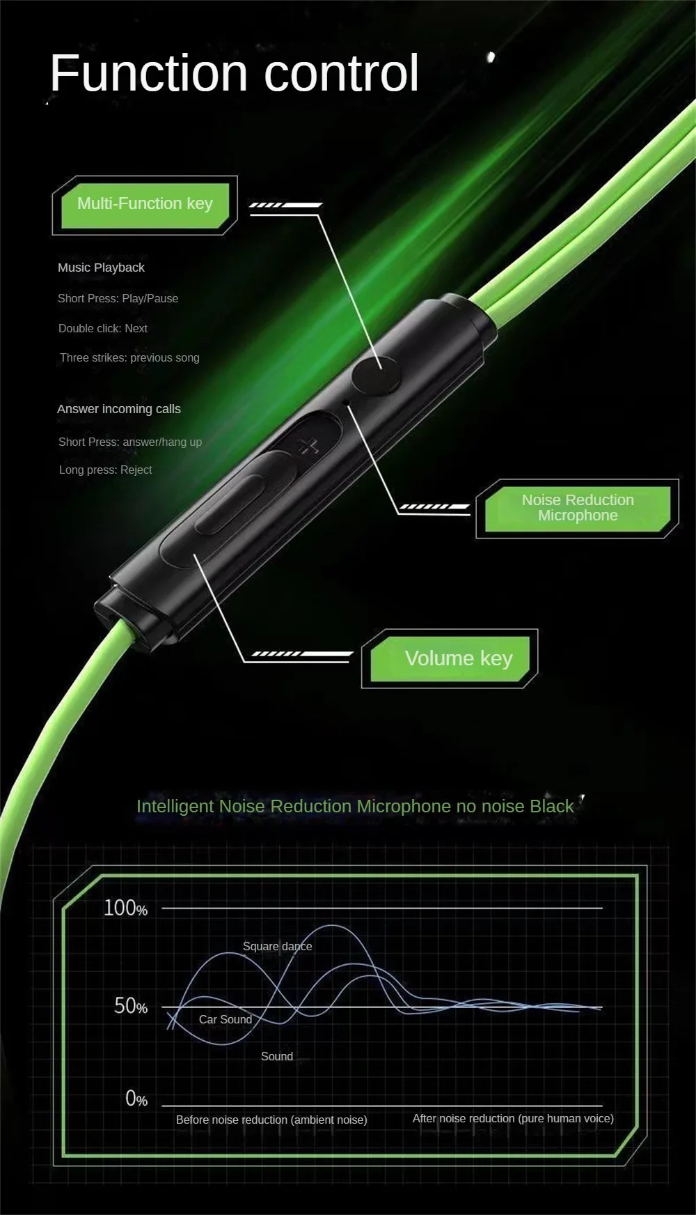 4.【Selección de cable】: cable con cable sólido, material TPE de superficie, transmisión suave, calidad de sonido completamente pura