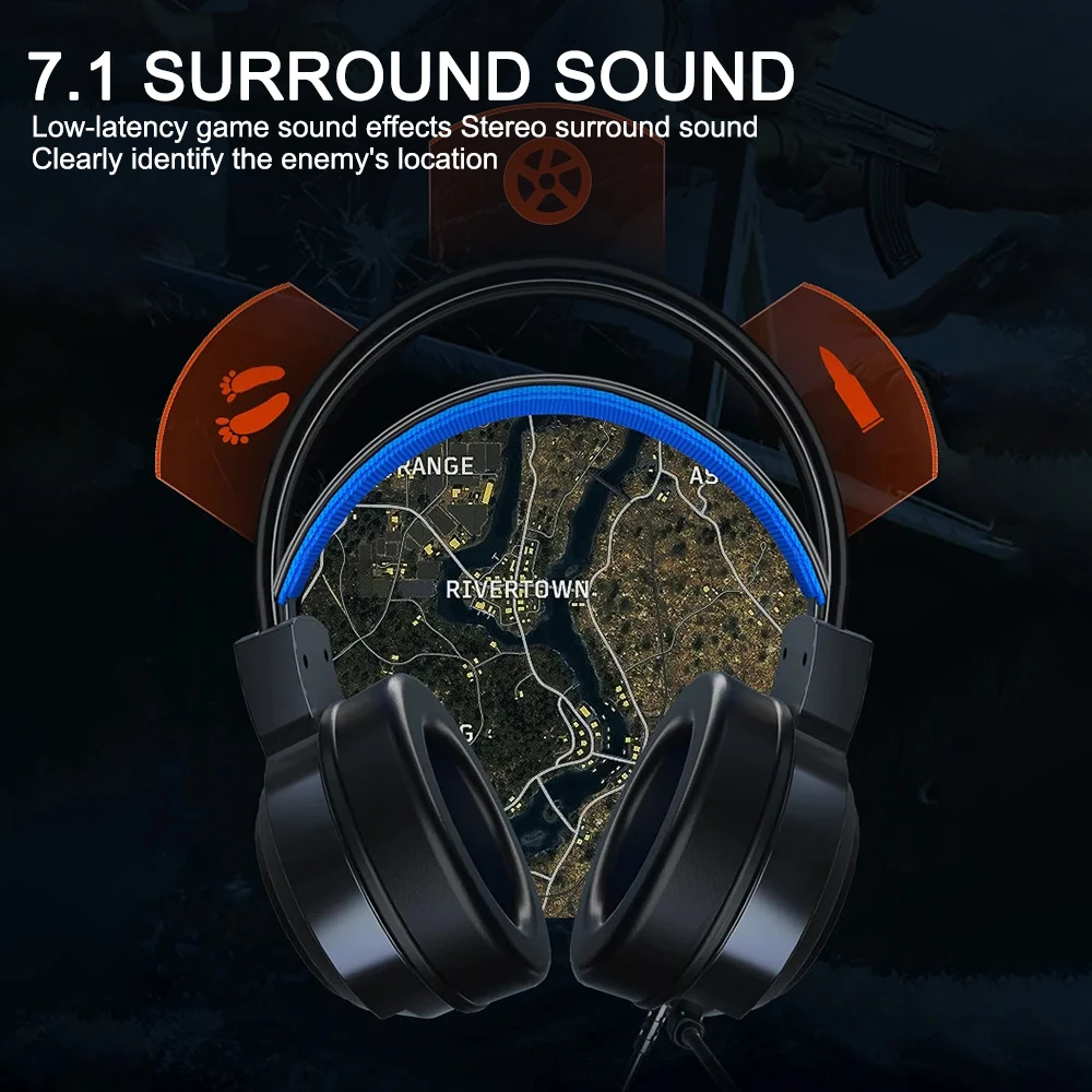 Auriculares USB para juegos, auriculares con cable de 3,5mm, 7,1 canales, estéreo, envolvente, bajo, auricular, casco con micrófono para PC, portátil, Gamer