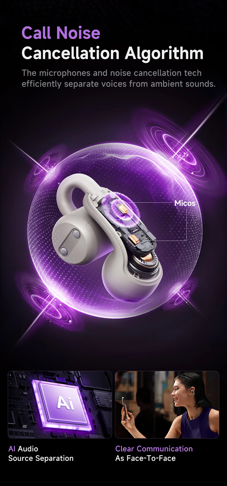 2.Diseño de oreja abierta: le permite mantenerse consciente de su entorno mientras disfruta de sus canciones favoritas.