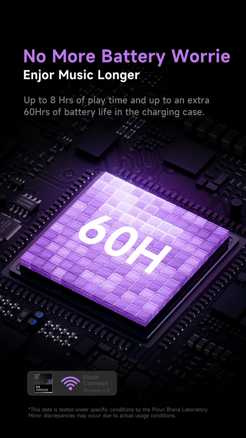 5.Conectividad perfecta: Bluetooth 5.4 proporciona una conexión estable y rápida para una transmisión de música ininterrumpida.