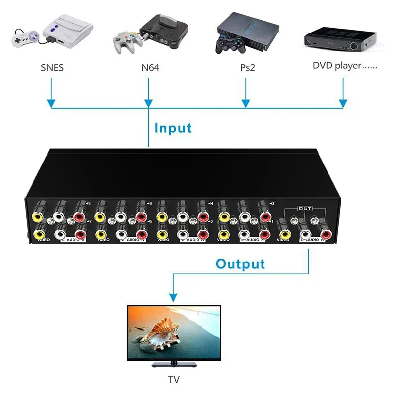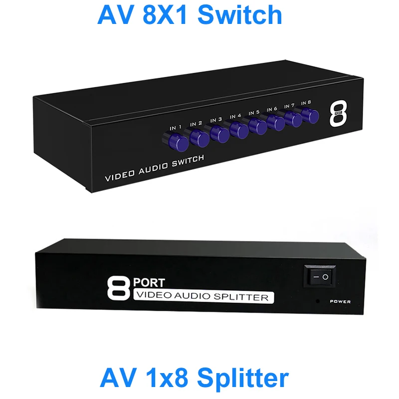 Comprar AV Splitter 1x8 1 in 8 Out RCA Screen Audio Video Splitter Vs 8x1 AV Switcher para Wii PS2 PS4 Xbox STB DVD Speaker Amplifier TV