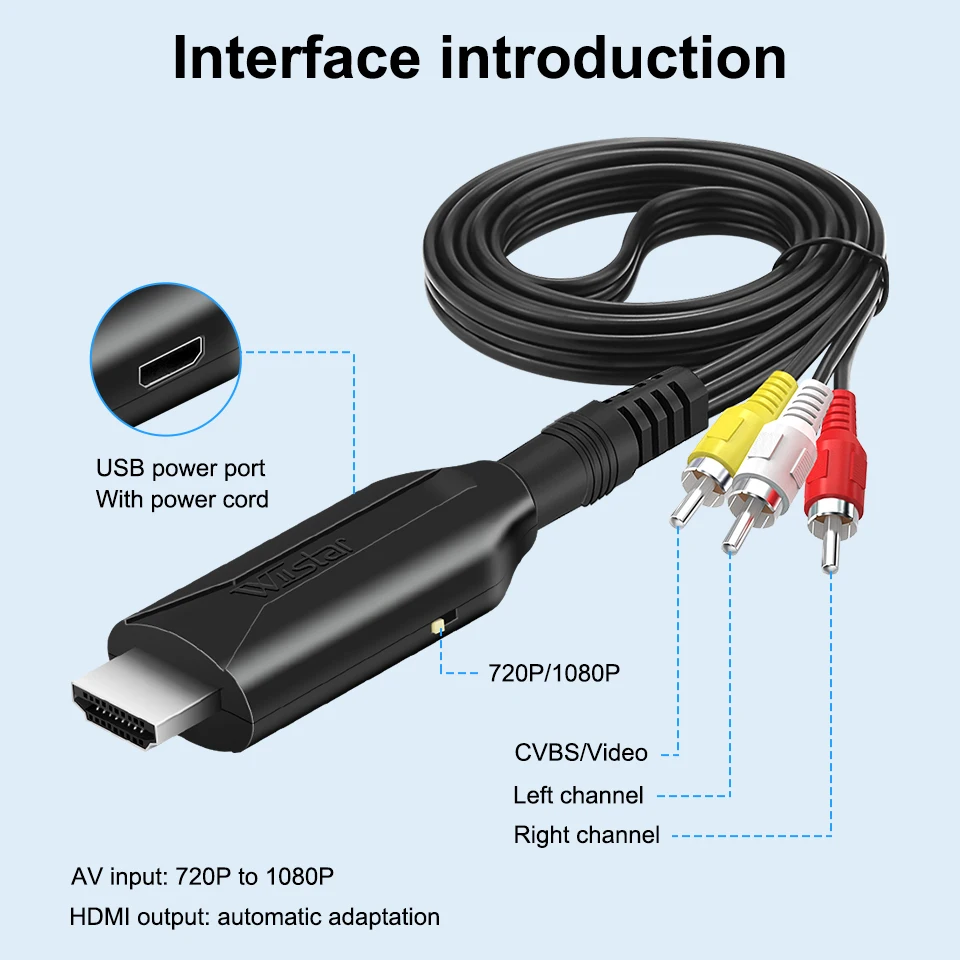 Este convertidor compatible con Mini AV/CVBS a HDMI es un convertidor universal para entrada compuesta analógica a salida compatible con HDMI 1080p (60HZ)