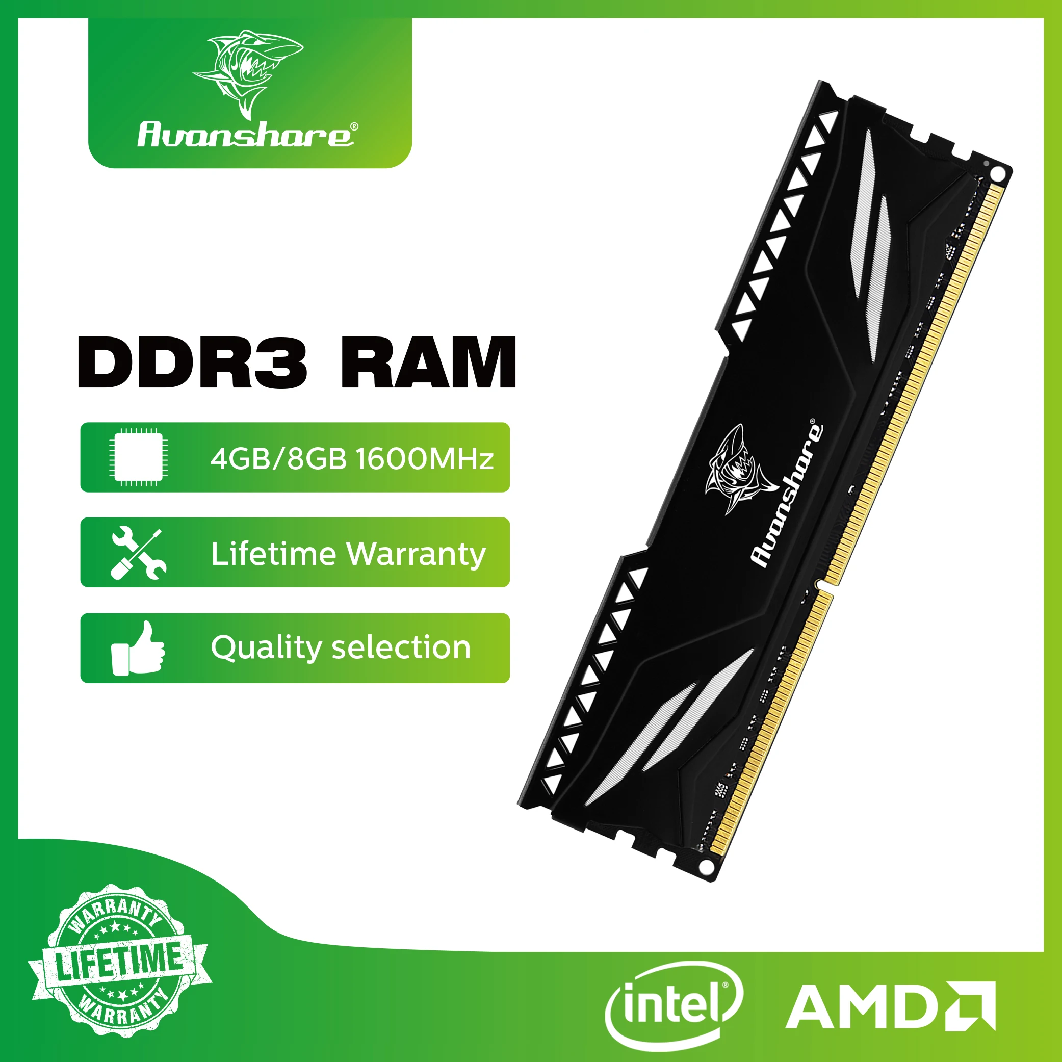 Comprar Avanshare-memoria Ram DDR3, 4GB, 8GB, 1333Mhz, 1600MHz, PC3-10600, 12800 DIMM, para ordenador de escritorio, 240 pines, 1,5 V, no ECC, con disipador de calor