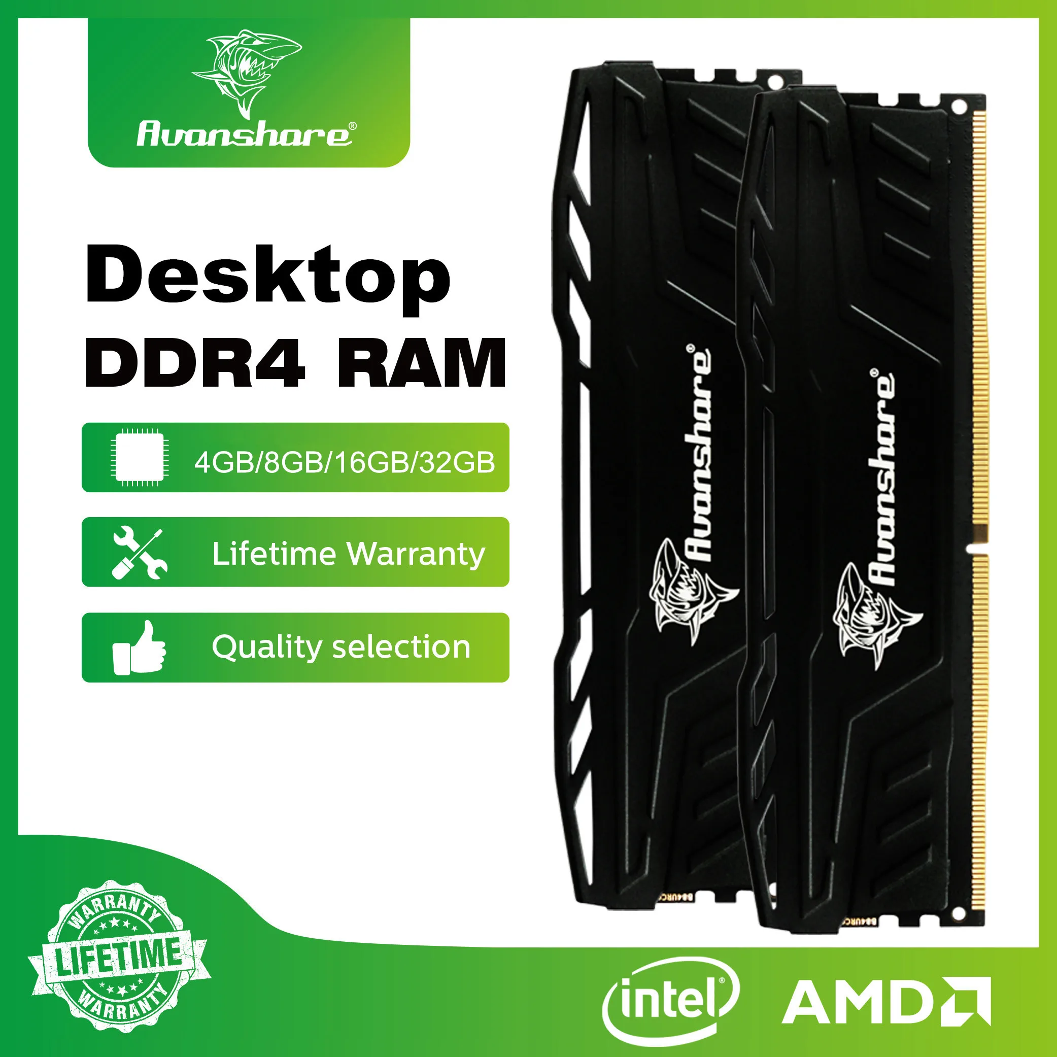 Comprar Avanshare-Memoria Ram DDR4 32GB 16GB 8GB 3200MHz 2666Mhz 2400mhz disipador de calor para PC, DIMM RAM para Intel AMD todas las placas base, nuevo