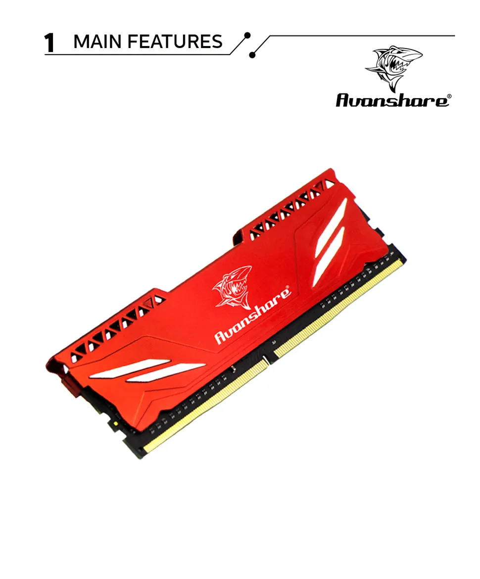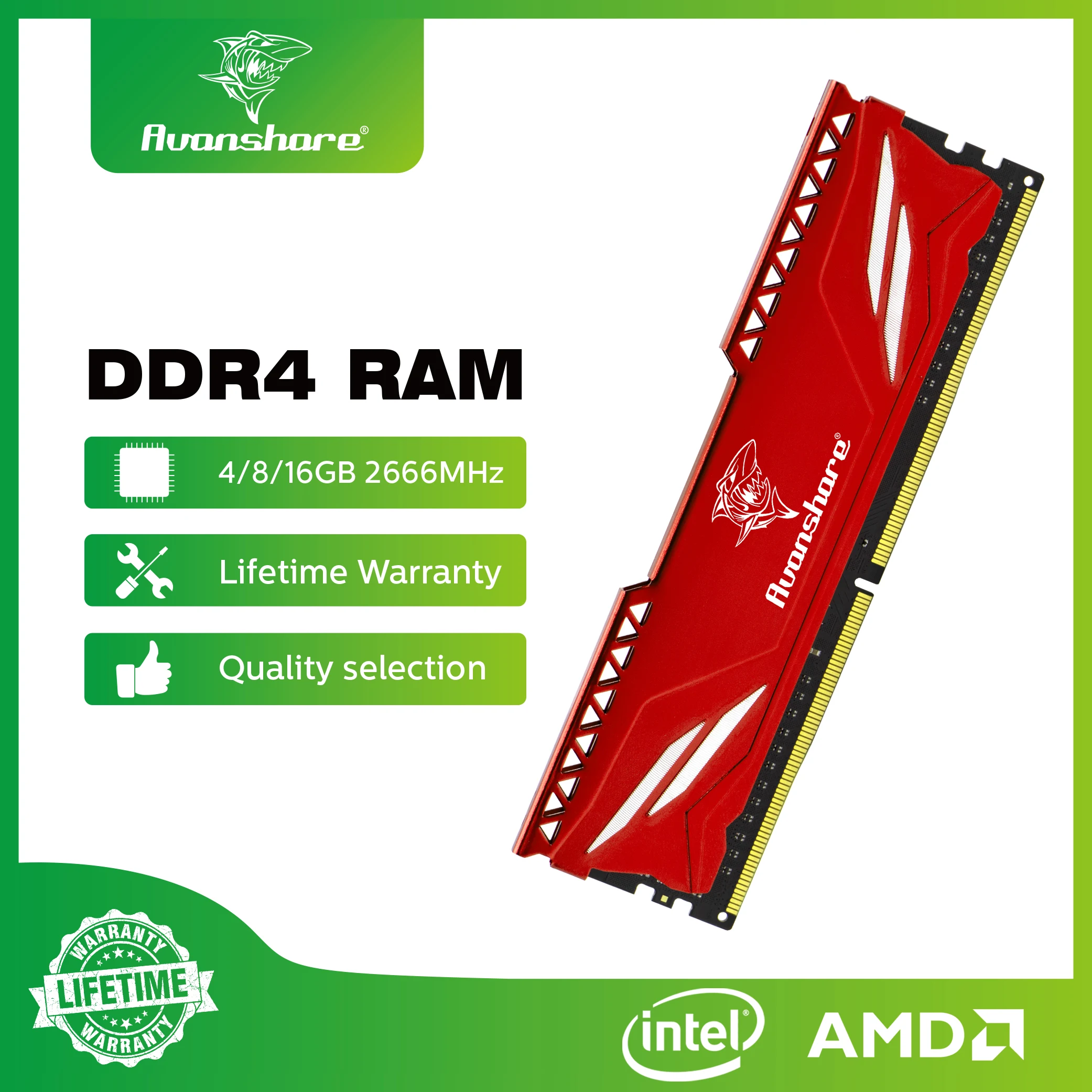 Comprar Avanshare-memoria Ram DDR4 de 8GB, 4GB, 16GB, 2400MHz, 2666MHz, 3200MHz, disipador de calor para PC, DIMM, para Intel, AMD, todas las placas base