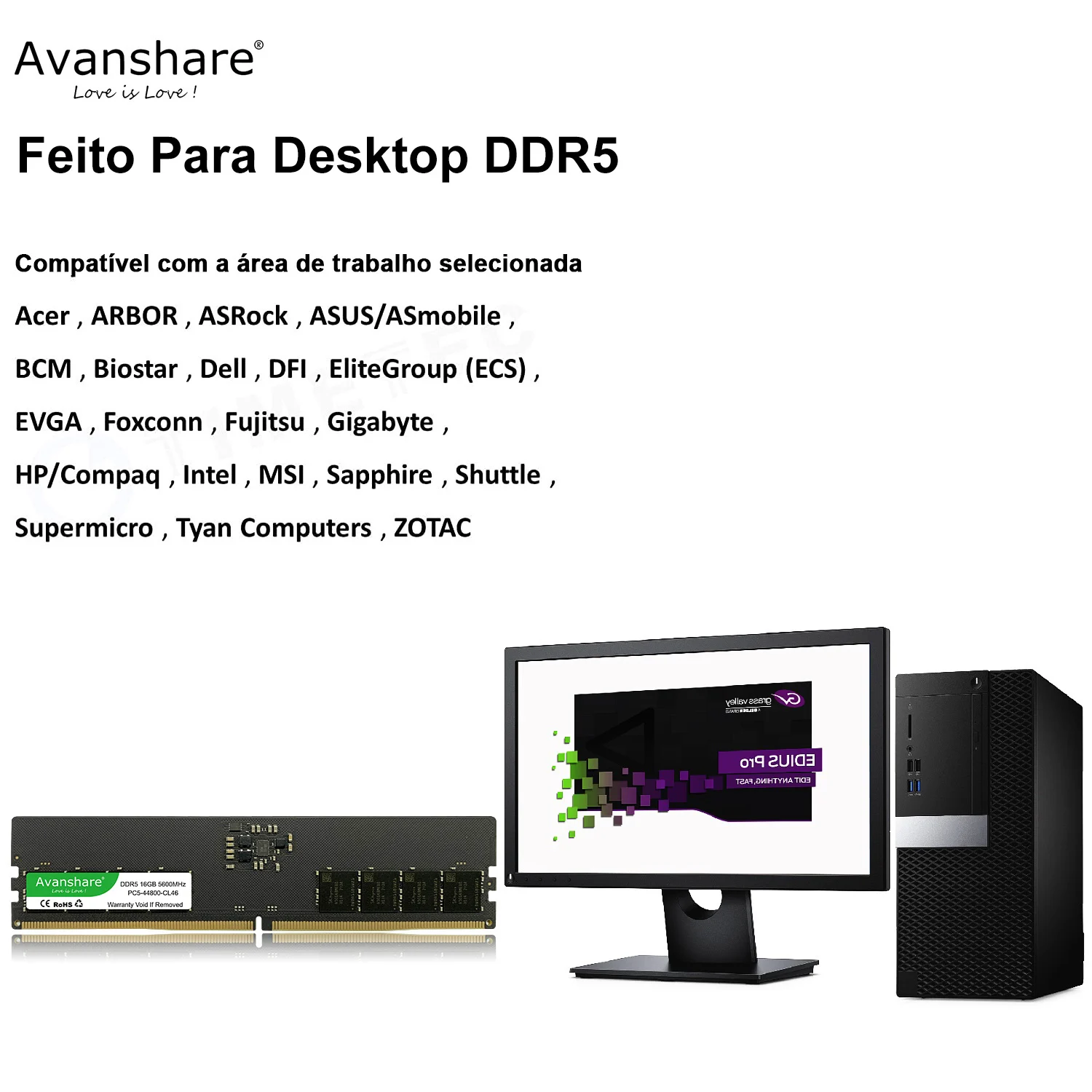 Comprar Avanshare Memoria Ram DDR5 32GB 16GB 8GB 4800MHz 5600MHz Udimm Computadora Memoria de escritorio Compatible con Intel y AMD