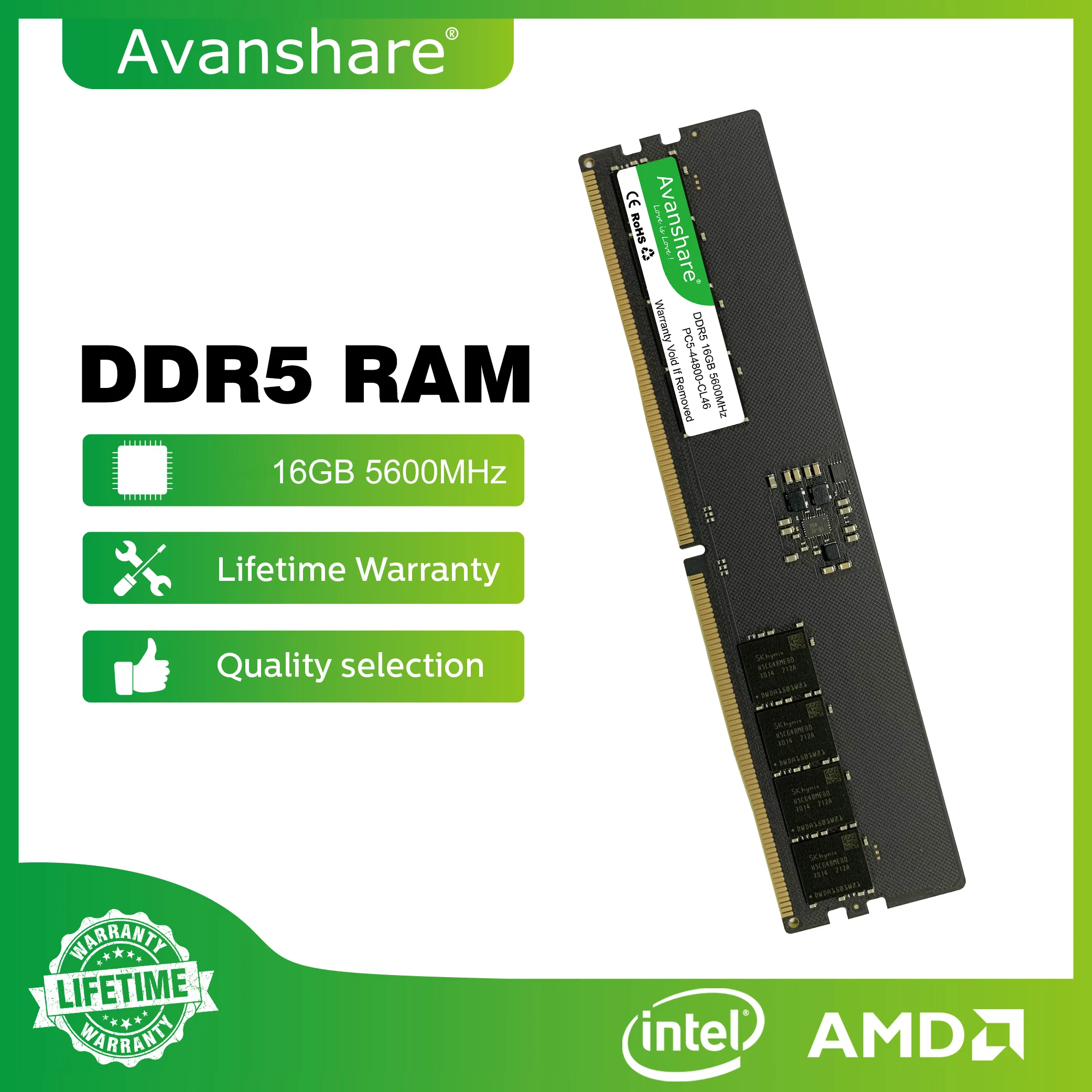 Avanshare Memoria Ram DDR5 32GB 16GB 8GB 4800MHz 5600MHz Udimm Computadora Memoria de escritorio Compatible con Intel y AMD