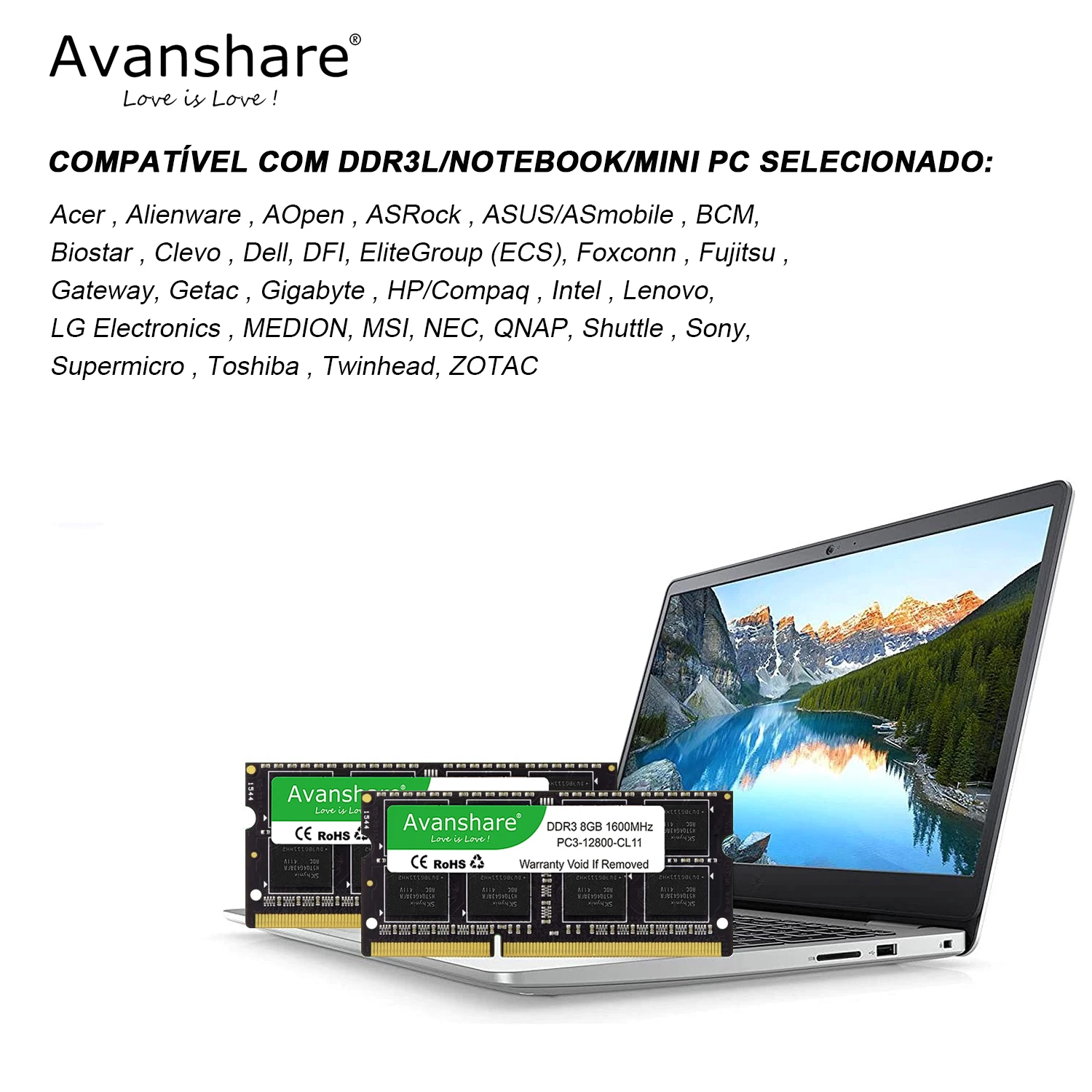 Avanshare Ram Memories DDR5 DDR4 DDR3 DDR3L 32GB 16GB 8GB 4GB 2GB 1333 1600 2400 2666 3200 5600MHz Laptop Notebook Memory Sodimm