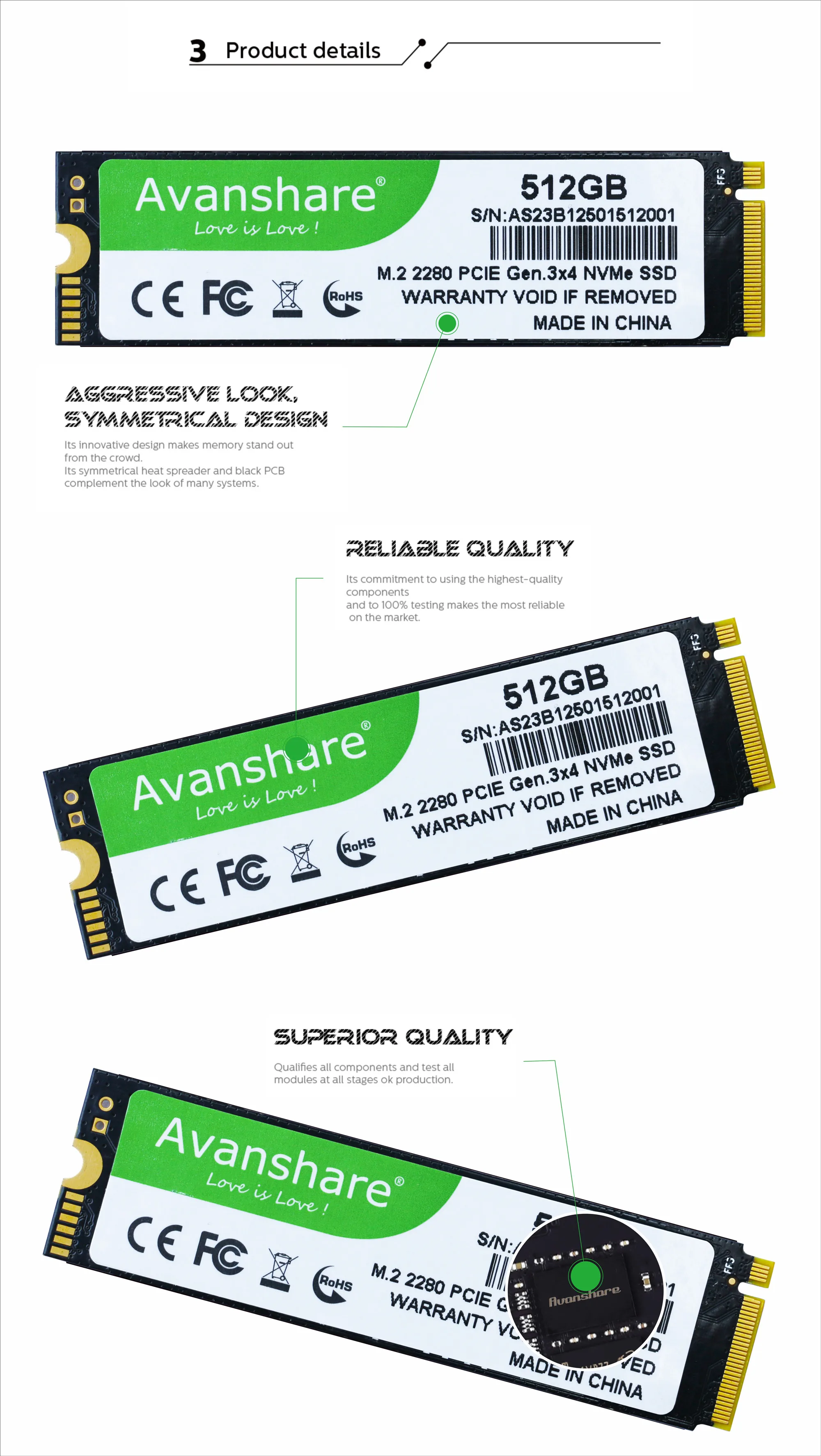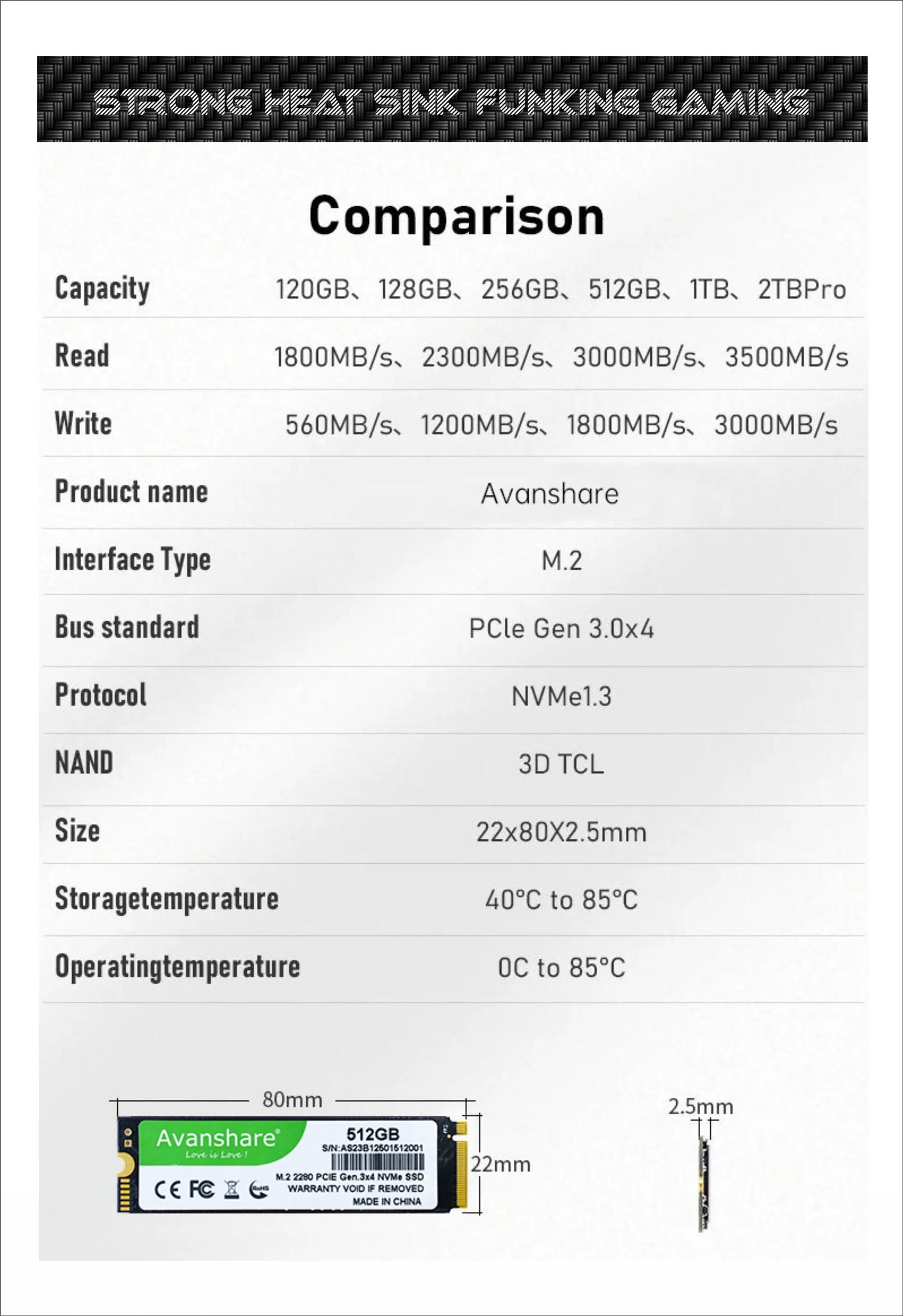 Avanshare SSD M.2 NVMe 128GB 256GB 512GB 1TB 2TB M2 NVMe PCIe3.0 M.2 2280 SSD disco duro disco de estado sólido para ordenador portátil de escritorio