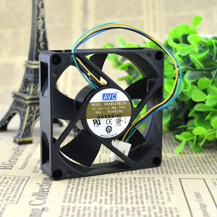 Comprar AVC-ventilador de chasis de doble bola, 8cm, 8020, DA08020B12U, 12V, 0.46A, 8cm, 4 cables