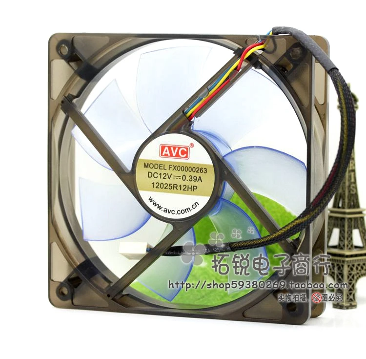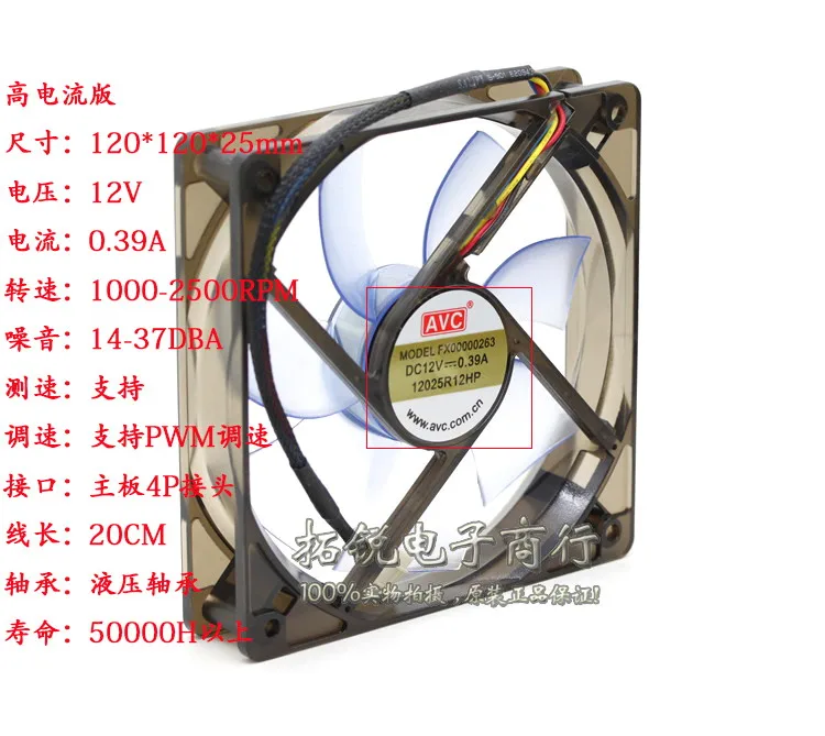 AVC-ventilador de refrigeración silencioso, 12CM, 12V, 0.12A, cuatro cables, PWM, Control de velocidad