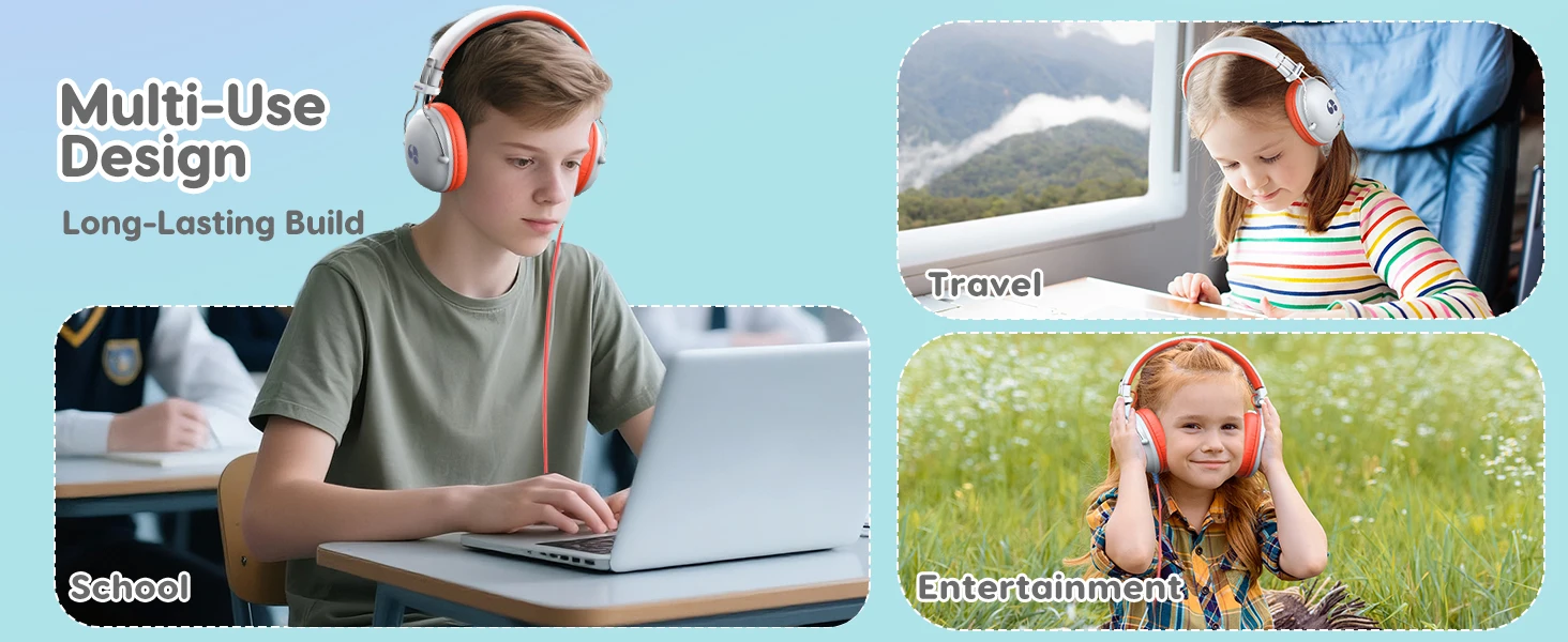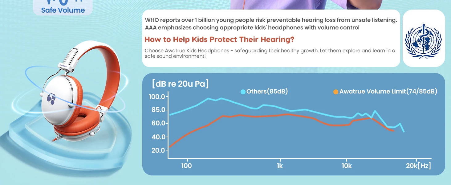 Para niños que juegan y aprendenVolumen de seguridad limitado.Los auriculares tienen dos niveles de dos decibeles: 74DB y 85DB.Puede proteger la audición de los niños. Es cómodo de usar e indoloro de usar durante mucho tiempo.