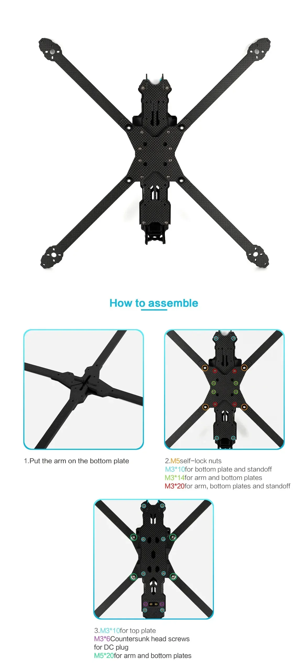 - Dirección entre ejes: 402 mm / Peso: 272 ± 5 g / Fibra de carbono: T700 / Accesorios: Máx., 10,0 pulgadas