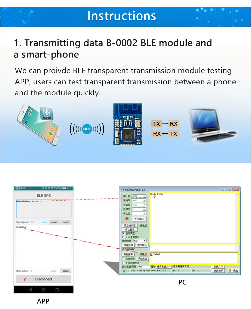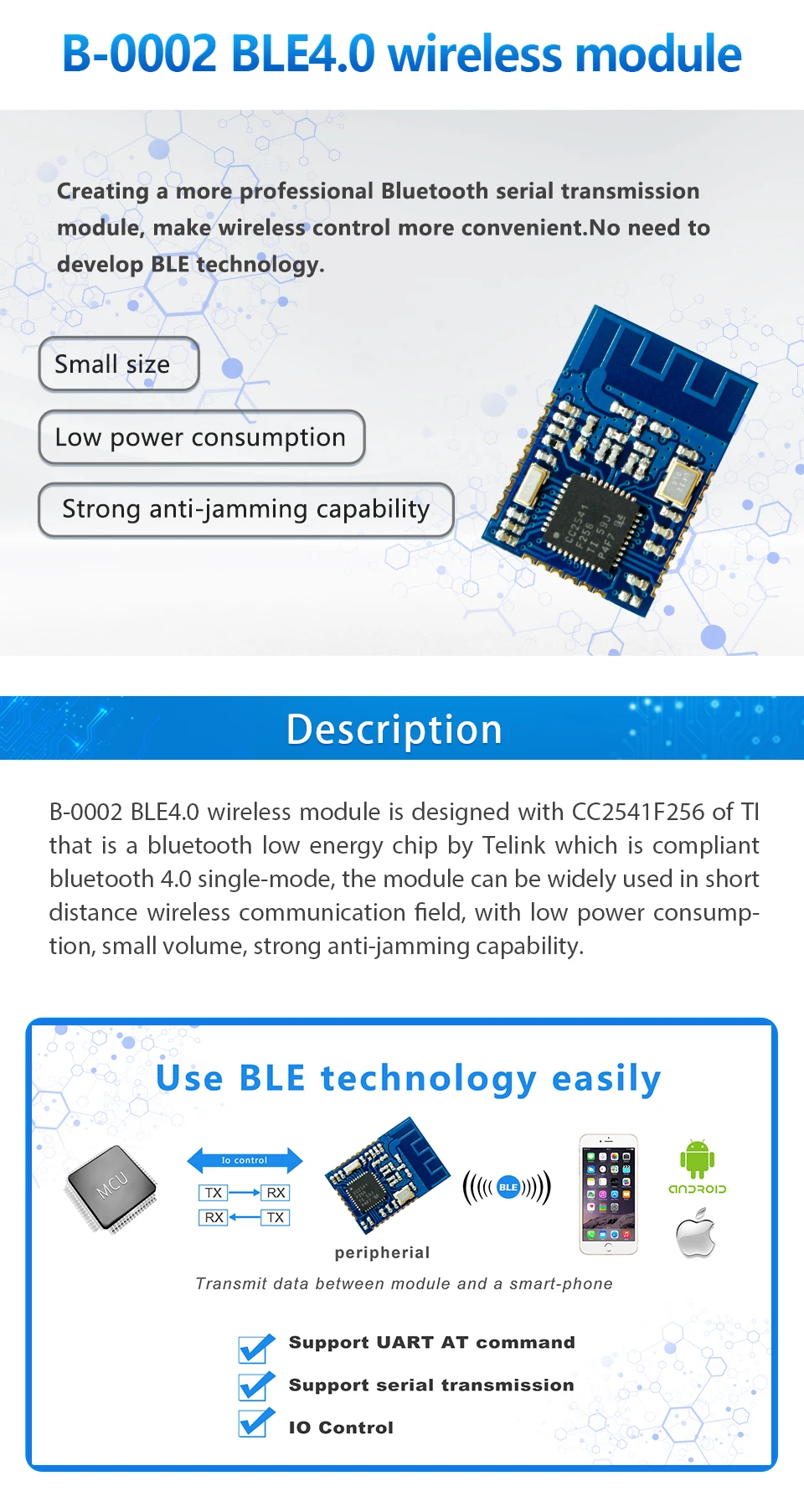 B-0002 TICC2541 BLE Buletooth 4,0 Uart transceptor transmisión transparente módulo inalámbrico DIY