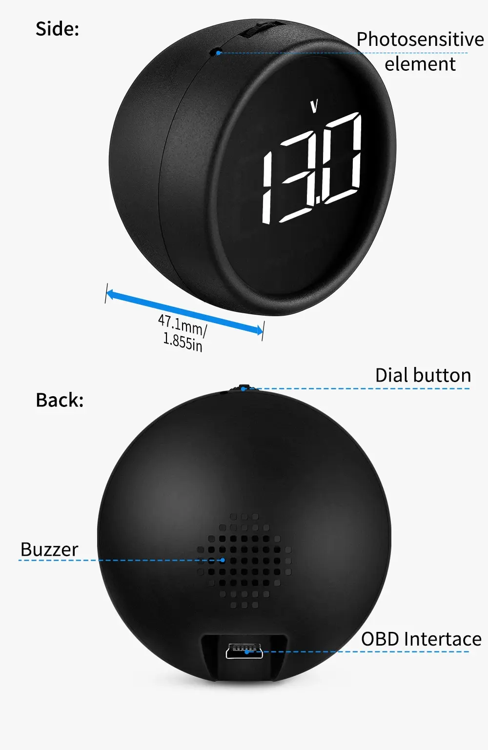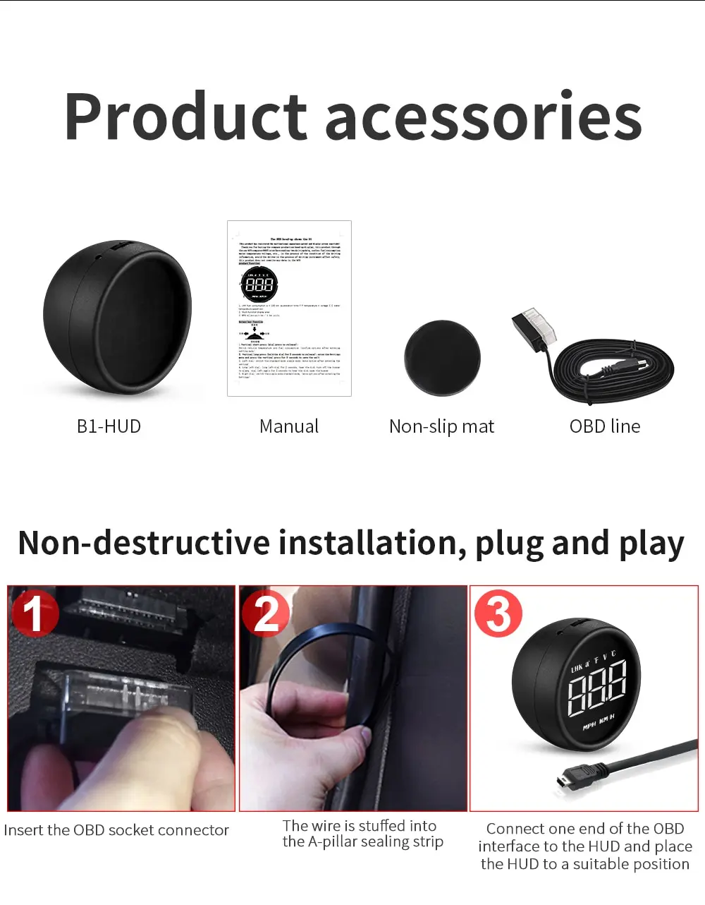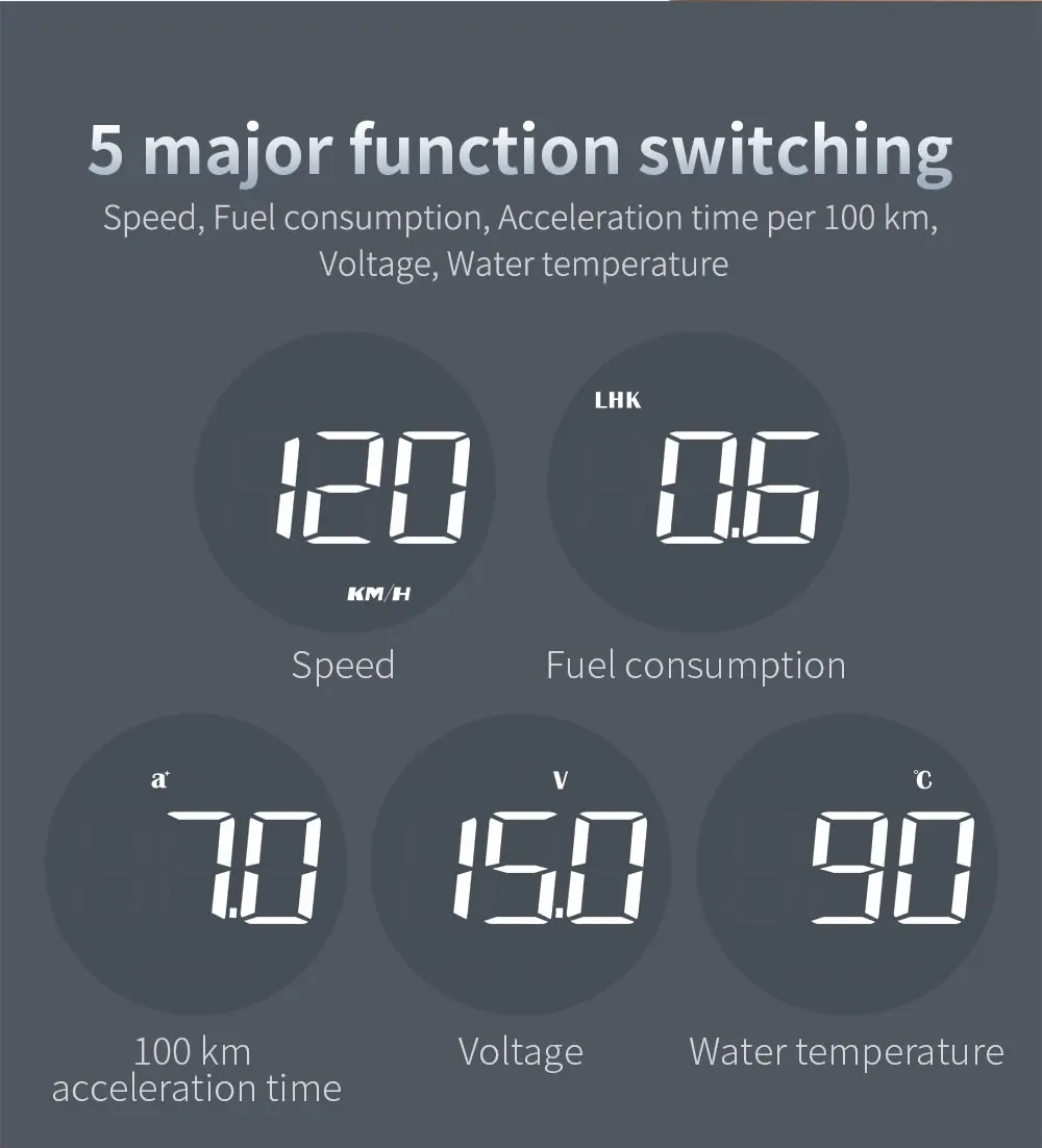 2.When HUD power on, HUD only shows the voltage and be automatic power off after 30 seconds driving.