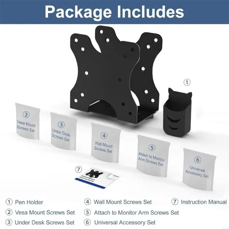 Características:OOTDTYEste soporte para computadora ofrece una solución de montaje para integrar una PC pequeña en su espacio de trabajo, se puede conectar al soporte del brazo, al soporte debajo del escritorio, al soporte de escritorio de mesa o al soporte de pared.