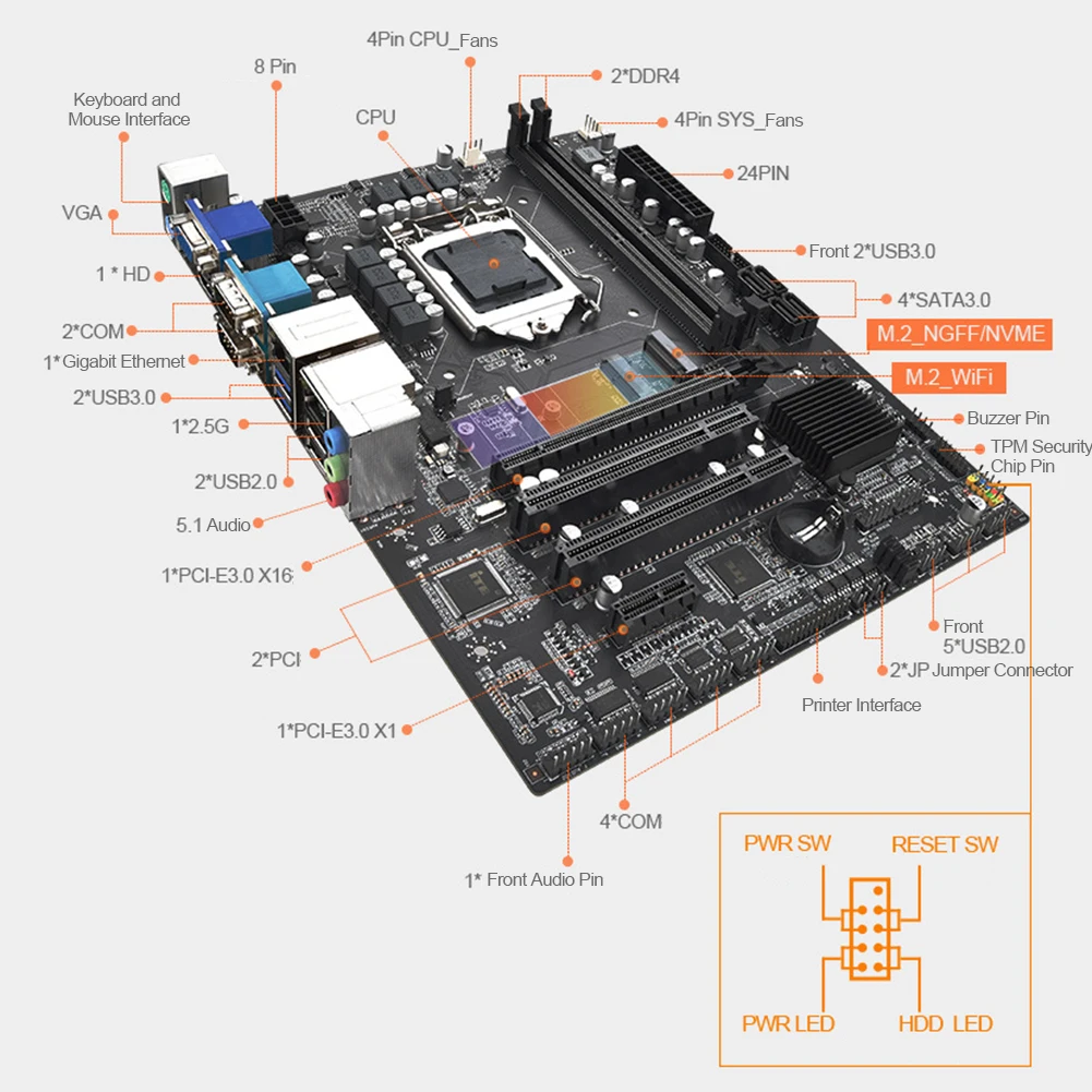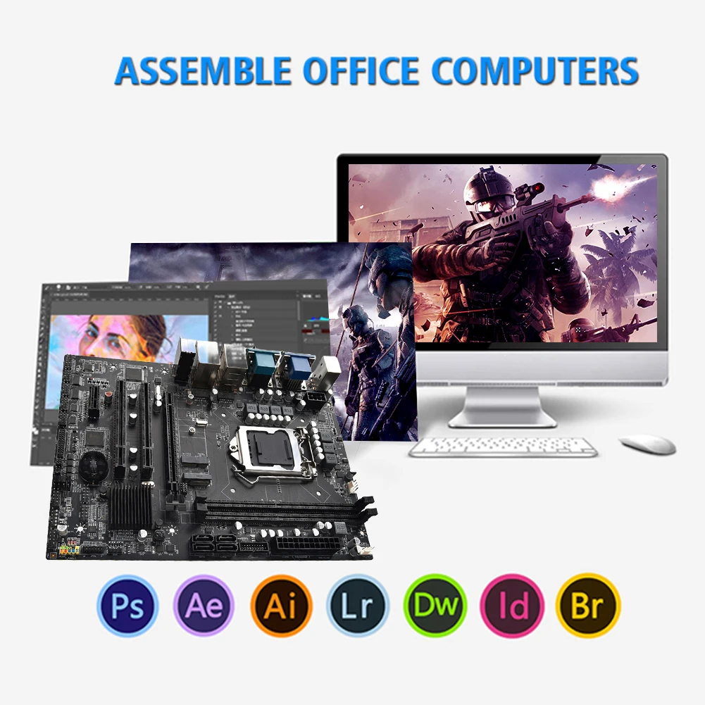 Placa base de escritorio B365M DDR4 64GB placa base de computadora M.2 NVME PC placa base compatible con Intel 6/7/8/9 Gen CPU VGA compatible con HDMI