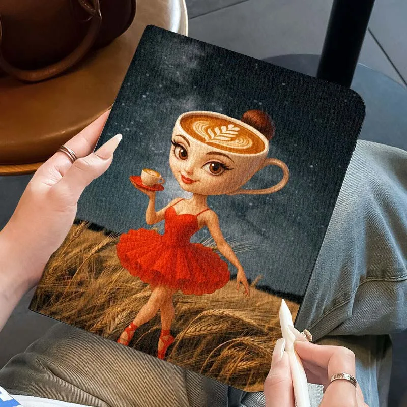 Bailarina capuchino arte para iPad Pro Air Mini 1 2 3 4 5 6 7 7th 8th 9th 10th 11th 10,2 9,7 10,5 10,9 11 12,9 funda para tableta