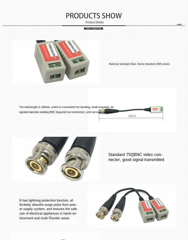 Comprar Balun vidéo BNC Cat5, 2 piezas (1 paire), receptor passif para cámara de vigilancia (AHD/CVI/TVI)