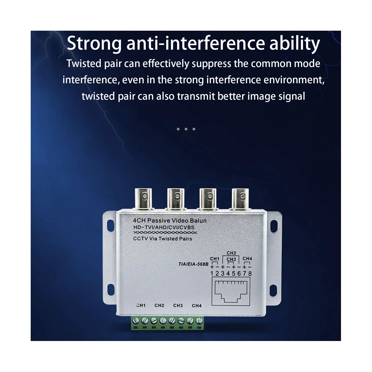 Comprar Balun de vídeo pasivo de 4 canales para cámaras TVI, CVI, AHD, CCTV, a través de pares trenzados, UTP, transceptor, BNC a UTP, RJ45