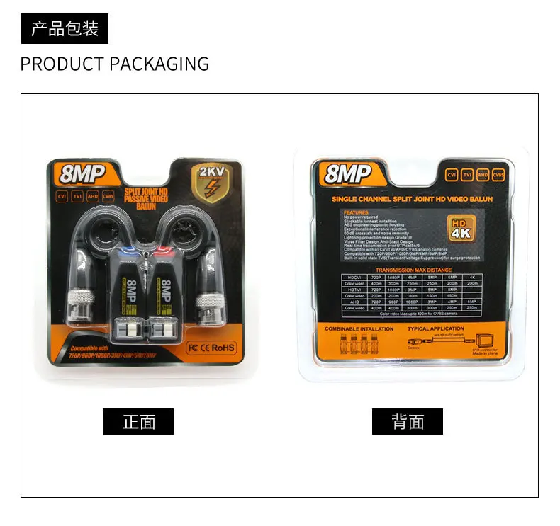 Comprar Balun de vídeo pasivo HD 8MP 1080P, transmisor de par trenzado, Cable Cctv para señal de vídeo AHD/CVI/TVI